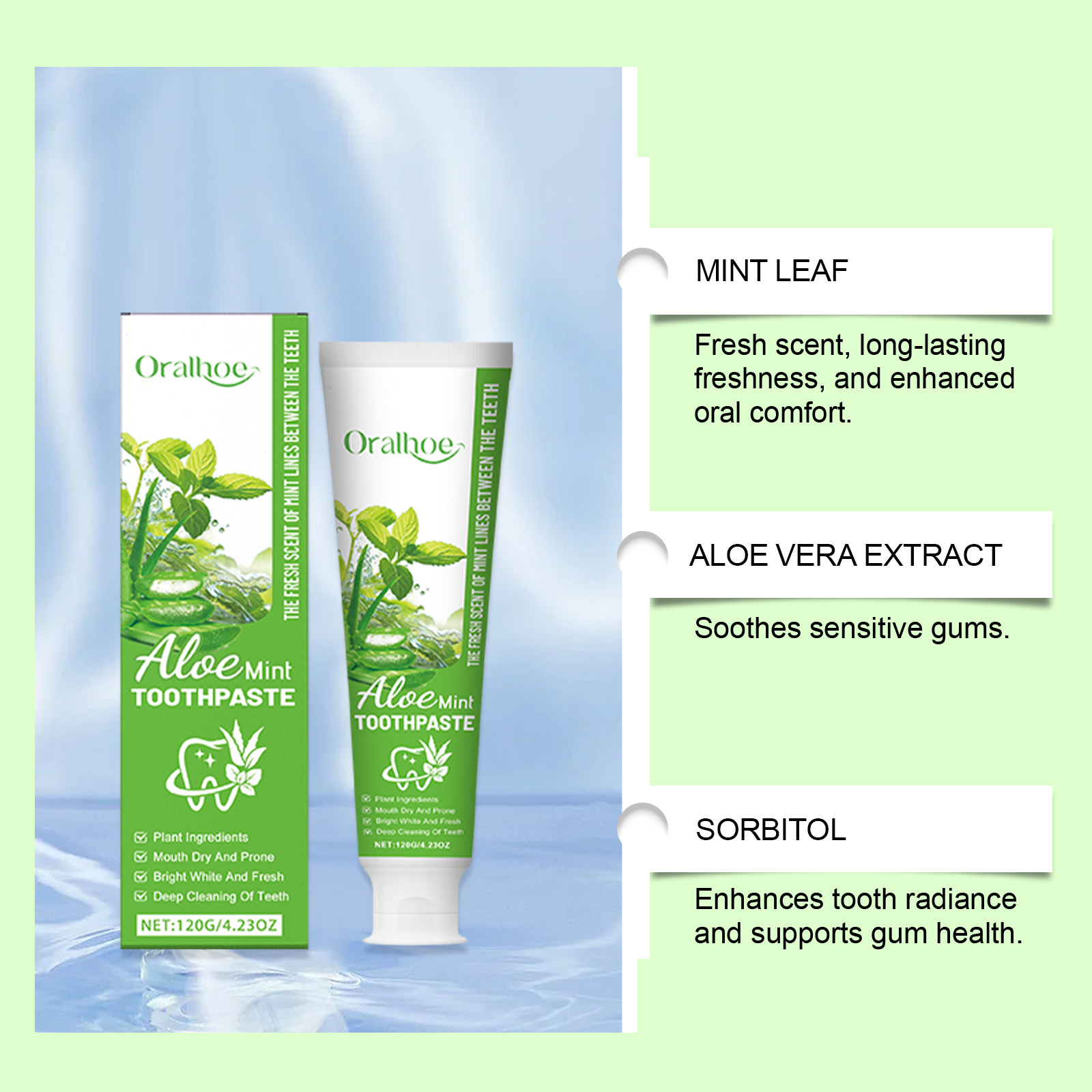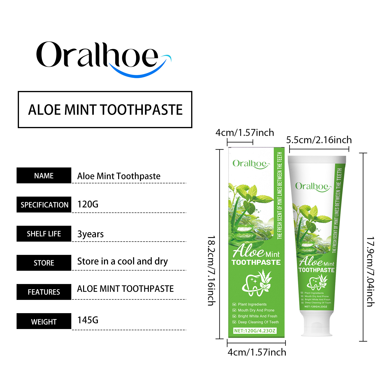 Oralhoe Aloe And Mint Toothpaste Gently Cares For And Cleans Teeth, Stains, Yellow Teeth And Unpleasant Odors, Refreshing And Protecting Teeth