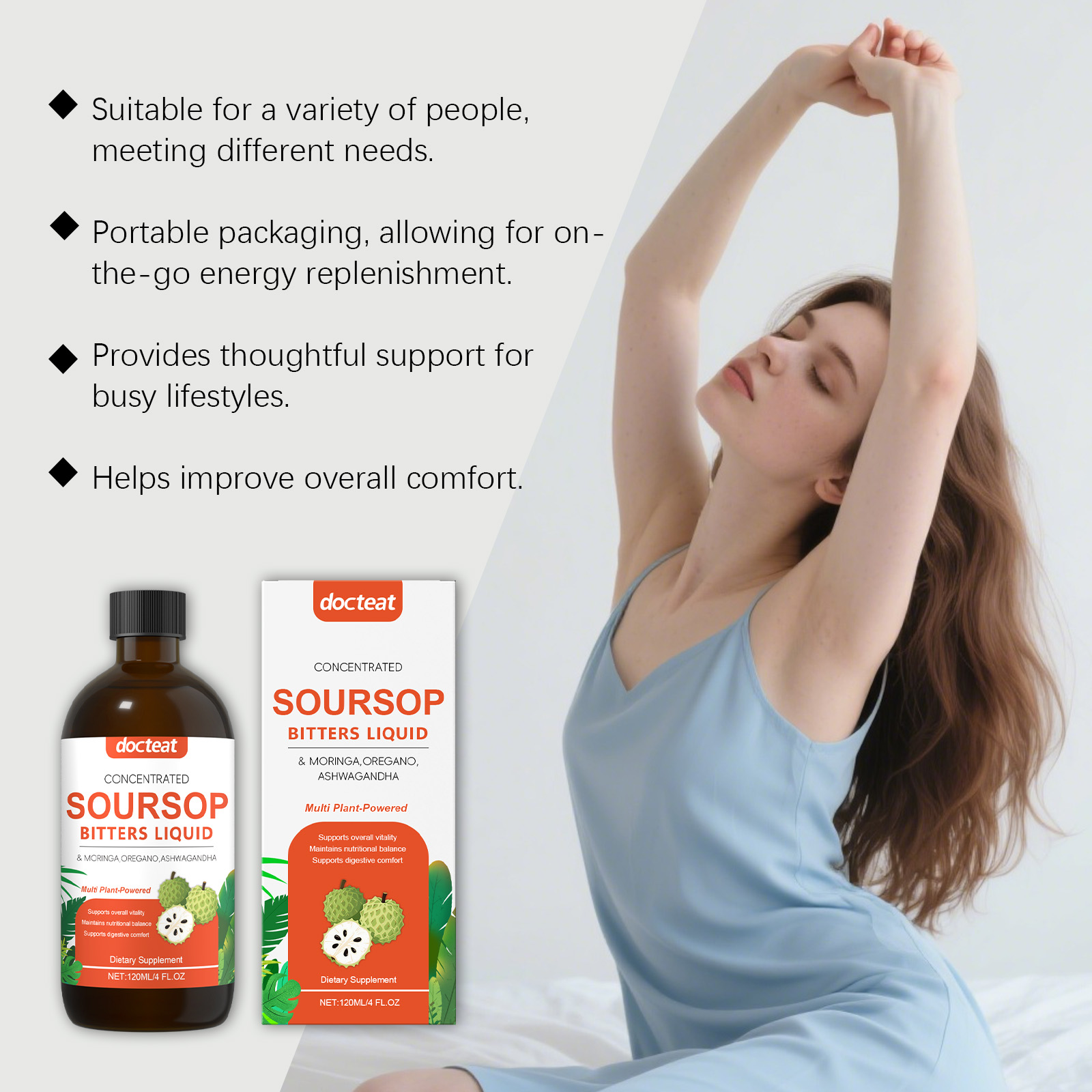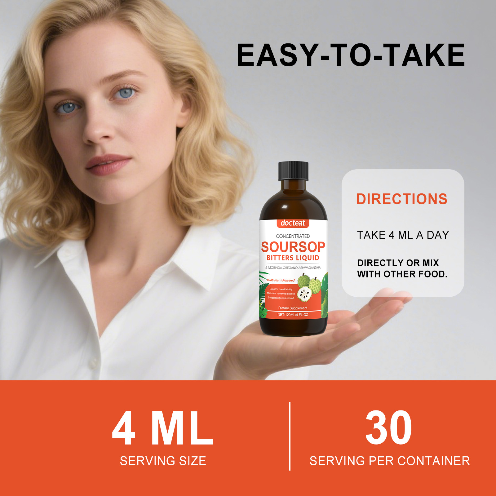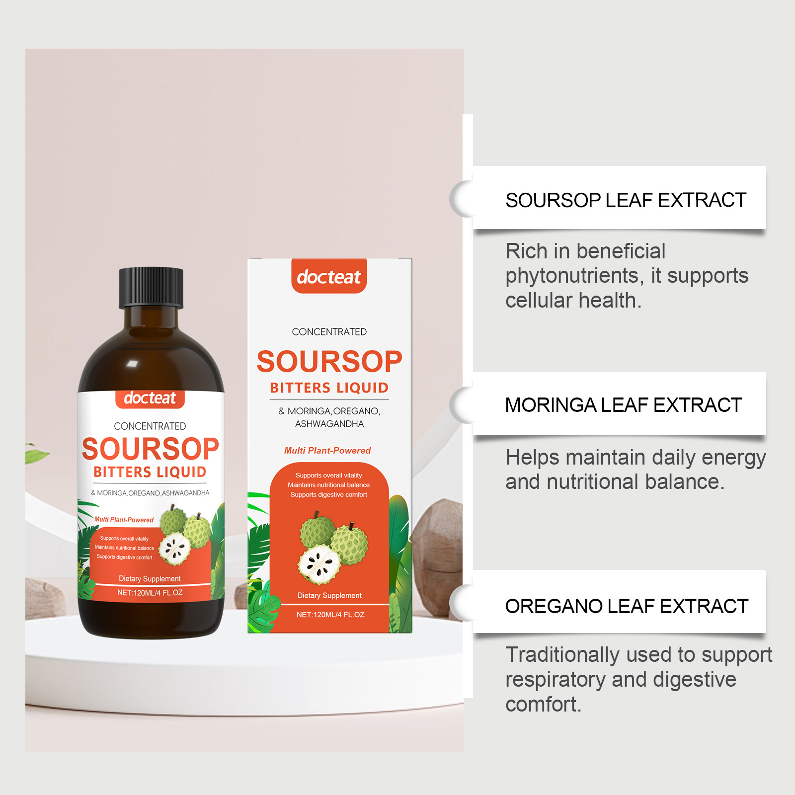 我们的刺果番荔枝补充剂,由刺果番荔枝叶提取物、辣木叶提取物精心调配而成。专为促进消化健康,缓解压力,增强身体活力设计。使用方法极为便捷:一天4ml,直接服用或与其他食物混合服用。并且它富含有益成分,可以支持细胞健康,维持能量平衡,支持身体应对压力,提升放松与整体健康。