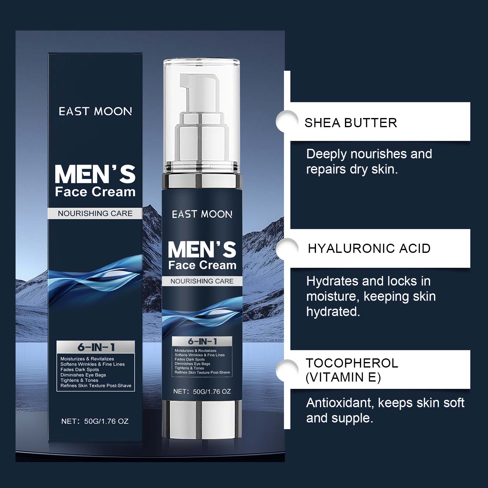 East Moon Men's Deep Moisturizing Cream After-Shave Facial Care Moisturizing, Refreshing And Non-Greasy Eye Cream