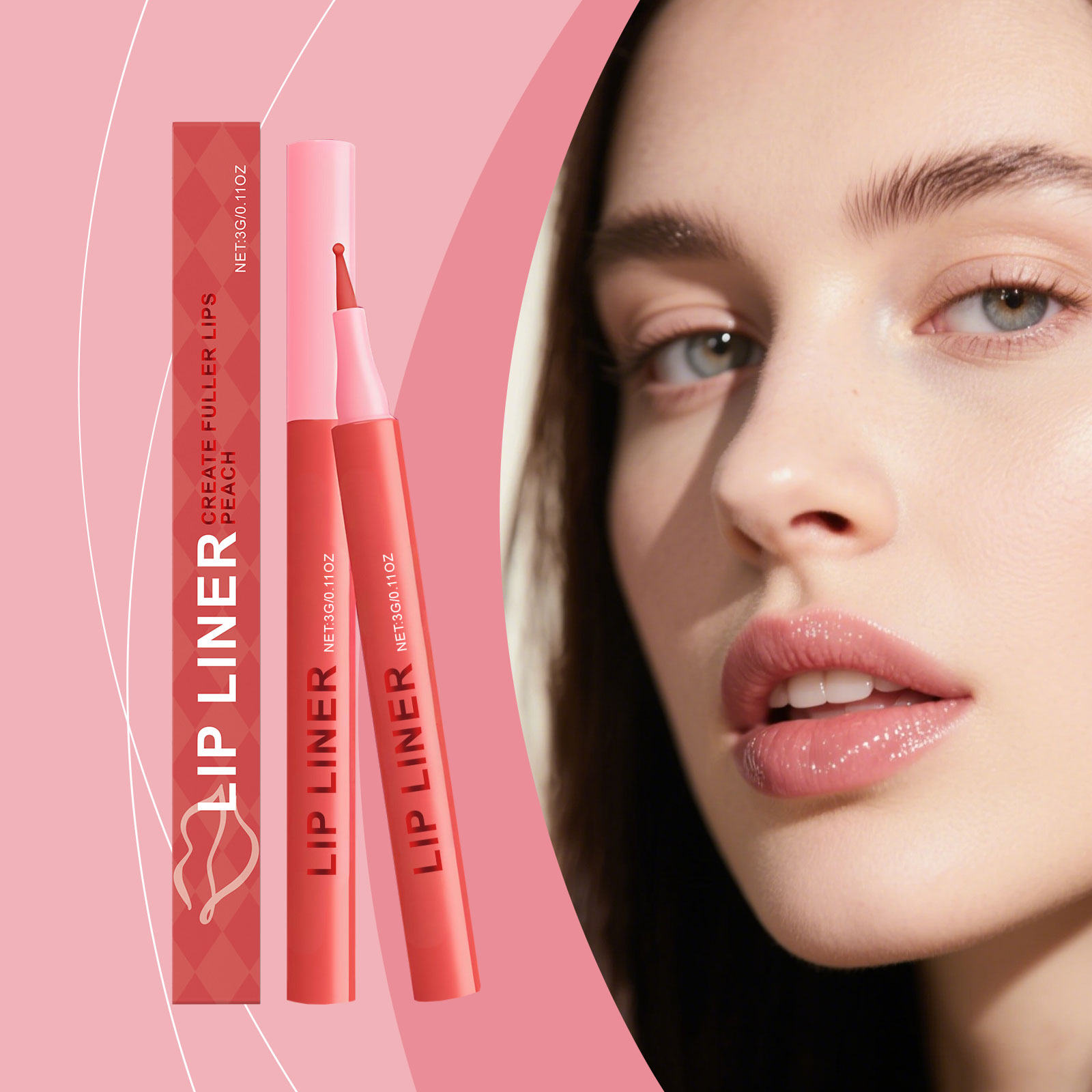 AMZ The Peach Pink Waterproof Lip Liner Pen Is A Natural And Easy-To-Apply Lip Makeup Tool For Daily Use. It Brightens, Brightens And Moisturizes The Lip Liner Pen
