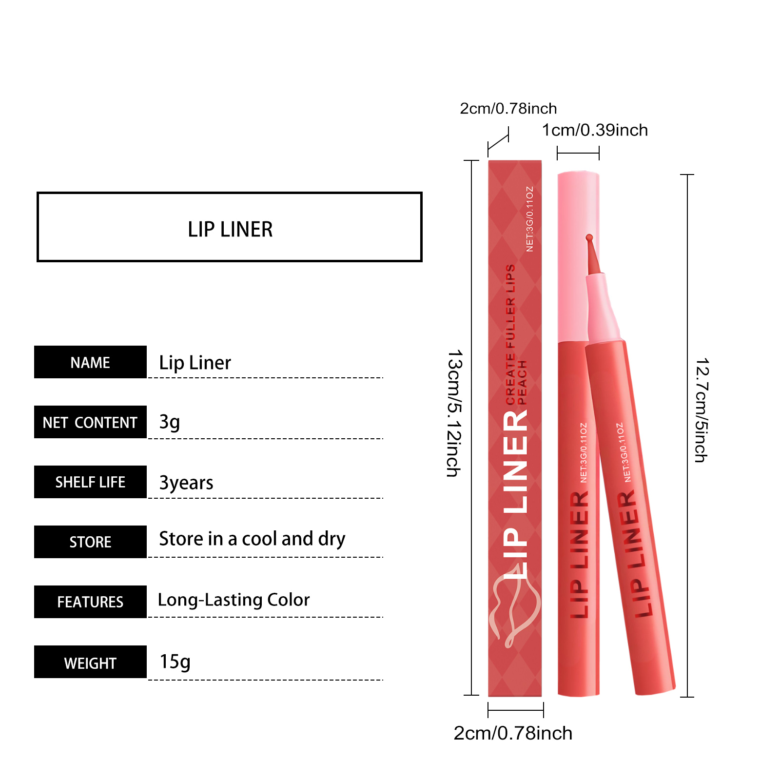 我们的桃红色防水唇线笔,由聚酯-5、淀粉辛烯基琥珀酸铝精心调配而成。专为打造浓郁哑光质感,色彩饱满鲜明,轻松勾勒立体唇形,彰显个人魅力,时尚度倍增设计。使用方法极为便捷:1.用唇线笔从唇峰位置往上两侧方向画想要的轮廓形状。2.再分别向左、右、中间画唇形。3.最后用唇线笔填充轮廓即可。并且它采用高级防水配方,全天候锁色,不惧汗水与油脂,持久保持精致唇妆,独特快干技术,触肤即干,减少晕染烦恼,色彩持久鲜亮,不易褪色,保持完美唇形。