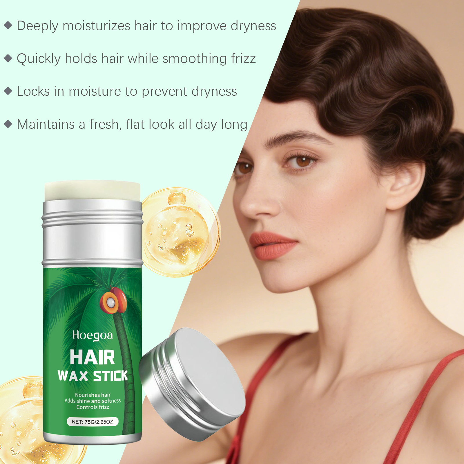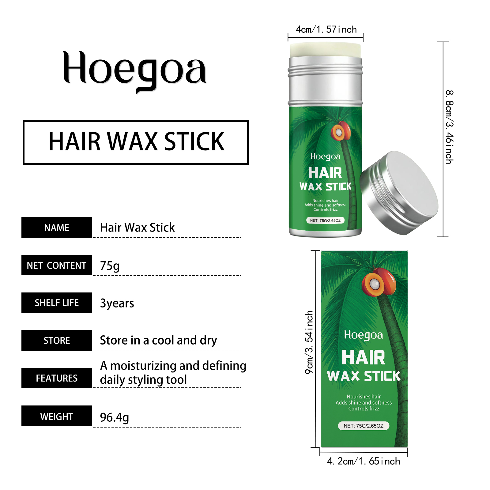 Hoegoa Moisturizing And Styling Hair Wax Stick Is A Daily Styling Hair Care Stick That Prevents Frizz And Fluffiness. It Is Light And Non-Sticky