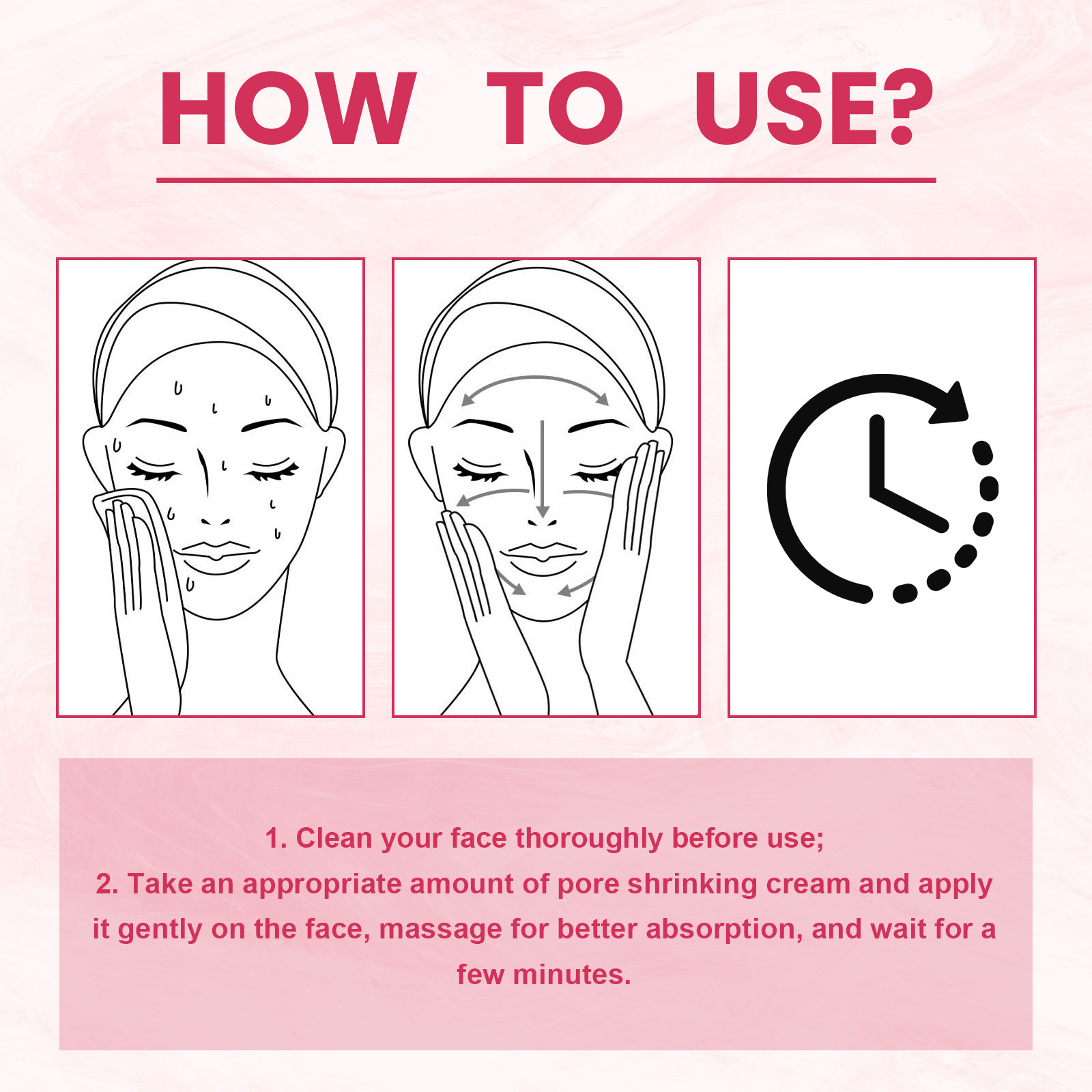 我们的毛孔收缩霜含有透明质酸,水解角蛋白,互花千层叶油。它可以帮助收缩毛孔,使毛孔看起来更小,提高皮肤整体的光滑度和细度,平衡油脂分泌,改善皮肤质地,使其更均匀,提高皮肤弹性,减少下垂,有助于控制多余的油脂,减少毛孔堵塞。它的使用方法很简单:使用前请彻底清洁面部。取适量收缩毛孔霜轻轻涂抹于面部,按摩使其更好的吸收,等待几分钟。收缩毛孔,改善肌肤整体光滑细腻,平衡油脂分泌,提高肌肤弹性,减少毛孔堵塞。