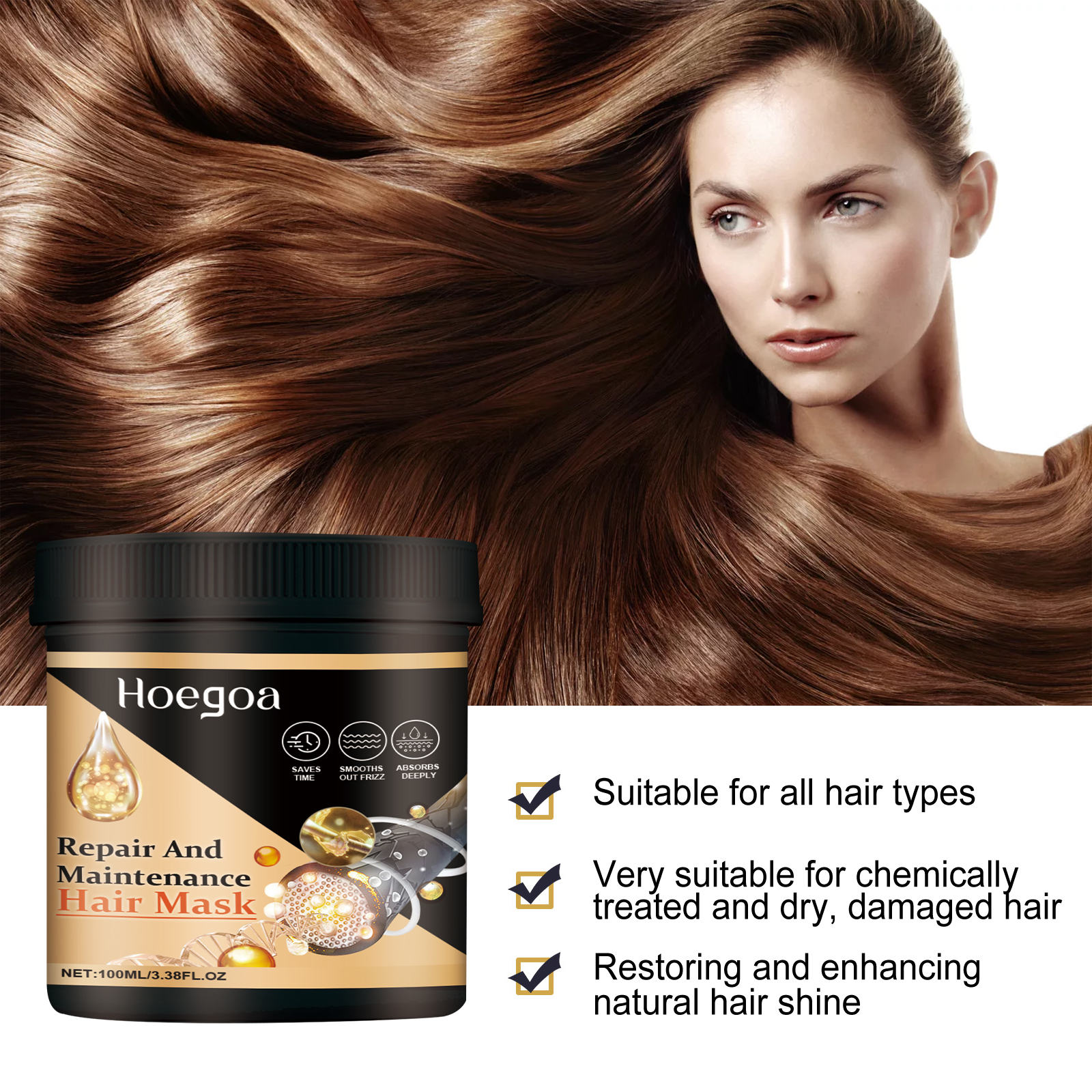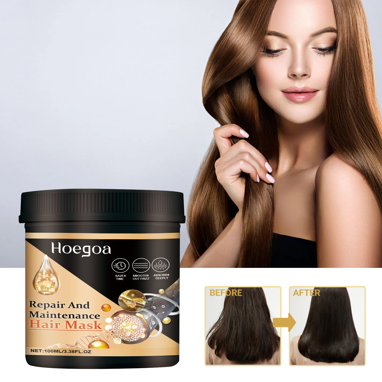 Hoegoa Repair And Maintenance Hair Mask, Dry Hair Frizz Damaged By Hot Dye Strong Repair Supple Care Hair Mask