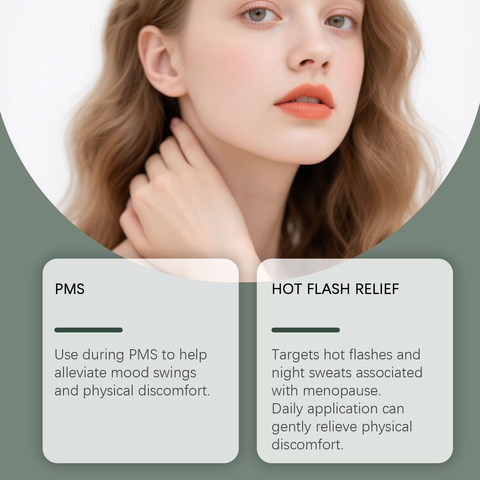 我们的温和护理霜,由薄荷叶、薯蓣块茎精心调配而成。专为缓解经前综合症发作期,辅助缓解情绪波动、身体不适等症状设计。使用方法极为便捷:清洁皮肤并干燥,取适量本品涂抹在面部、颈部、腹部、手臂或大腿等身体肌肤上并轻轻按摩促进吸收。并且它可以缓解更年期女性出现的潮热、盗汗问题,辅助支持女性荷尔蒙平衡。