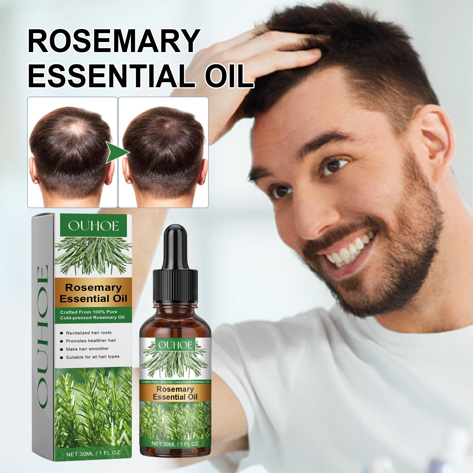 OUHOE Rosemary Essential Oil, Repair Solid Hair Strong And Moisturizing Hair Roots Thick And Supple Hair Care Essential Oil