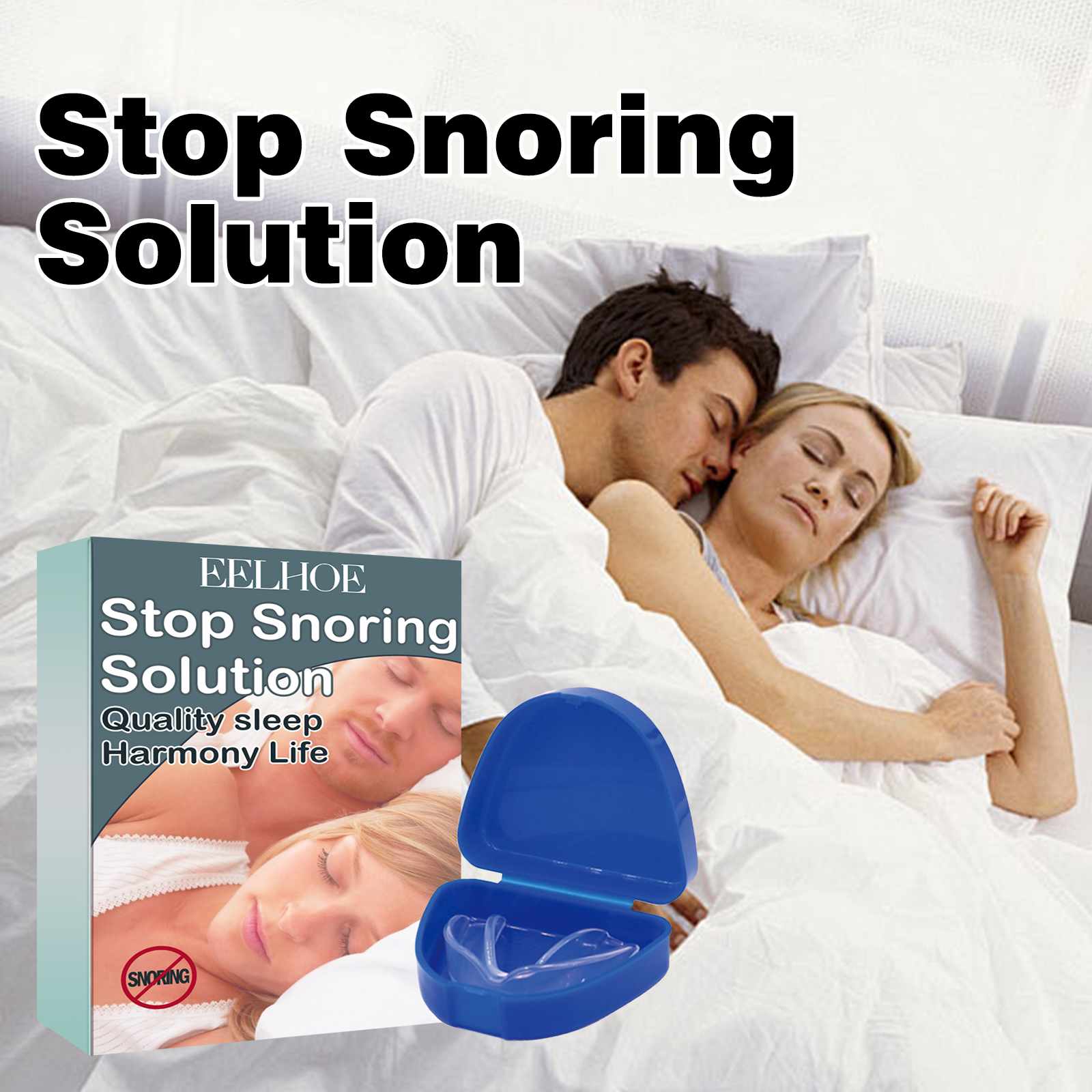 EELHOE Stop Snoring Solution, Oral Care Sleep Anti-Snoring Night Molar Mouthguard Anti-Snoring Set