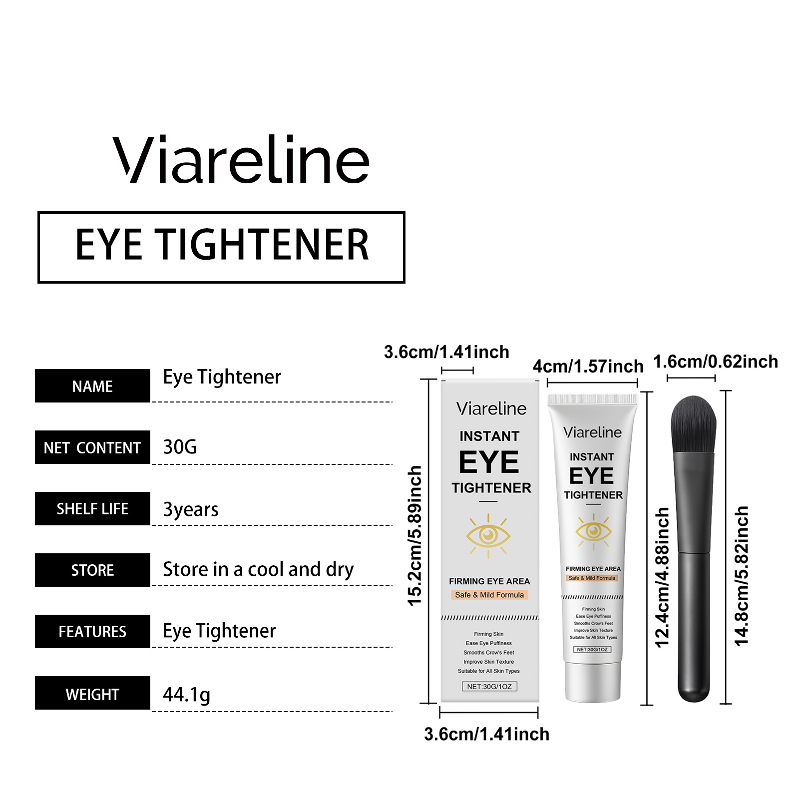 | 产品尺寸 | 眼部紧致霜:4*12.4cm,毛刷:14.8*1.6cm |