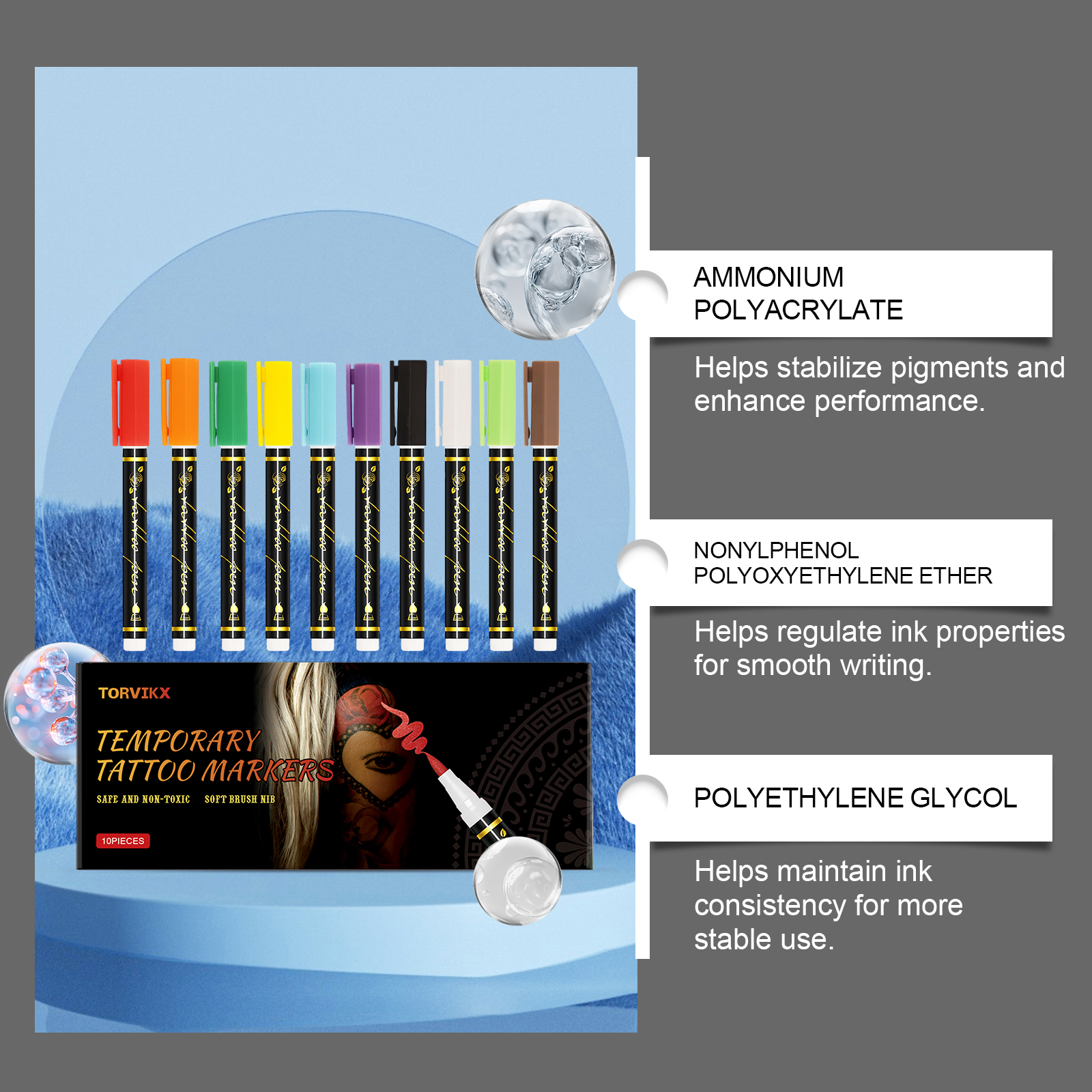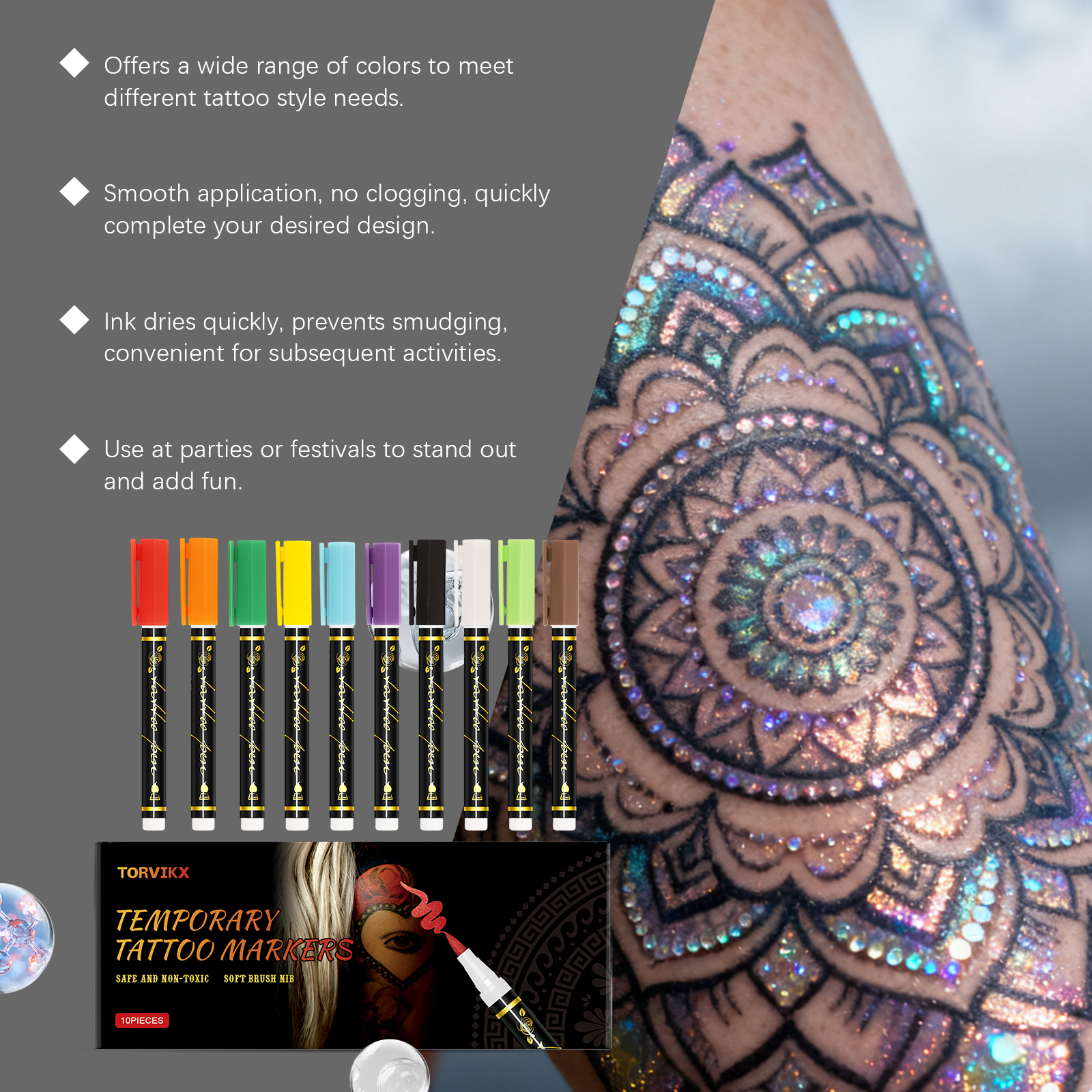 TORVIKX Temporary Tattoo Painting Pen, Suitable For Holiday Parties, Natural, Skin-Friendly And Convenient Painting Pen For Graffiti Creation