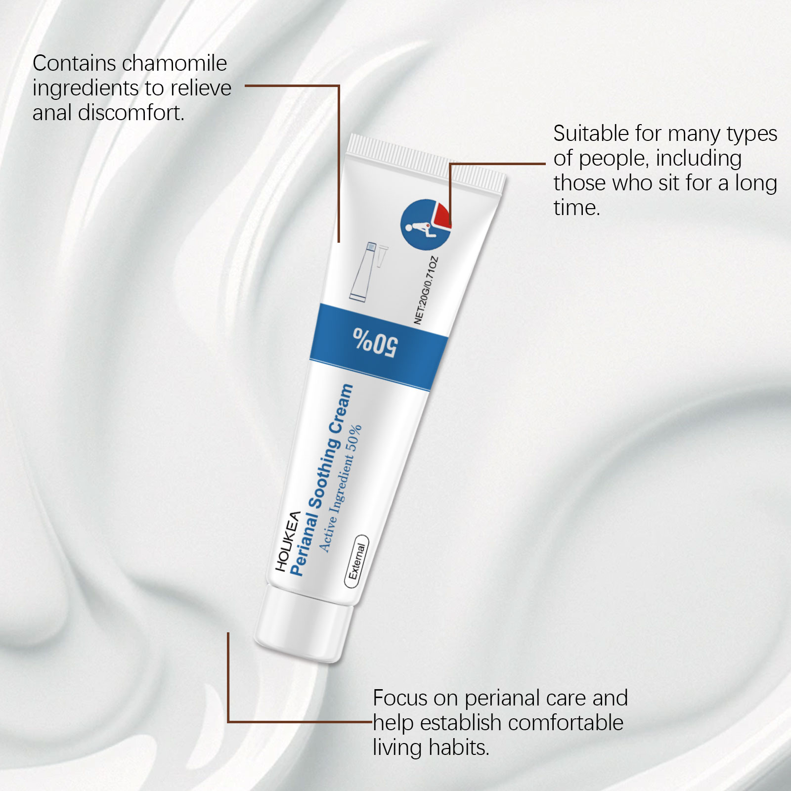 Houkea The Mild Formula Of The Perianal Care Cream Protects The Skin, Providing Comfort And Moisture For The Perianal Area. It Is A Daily External Care Cream