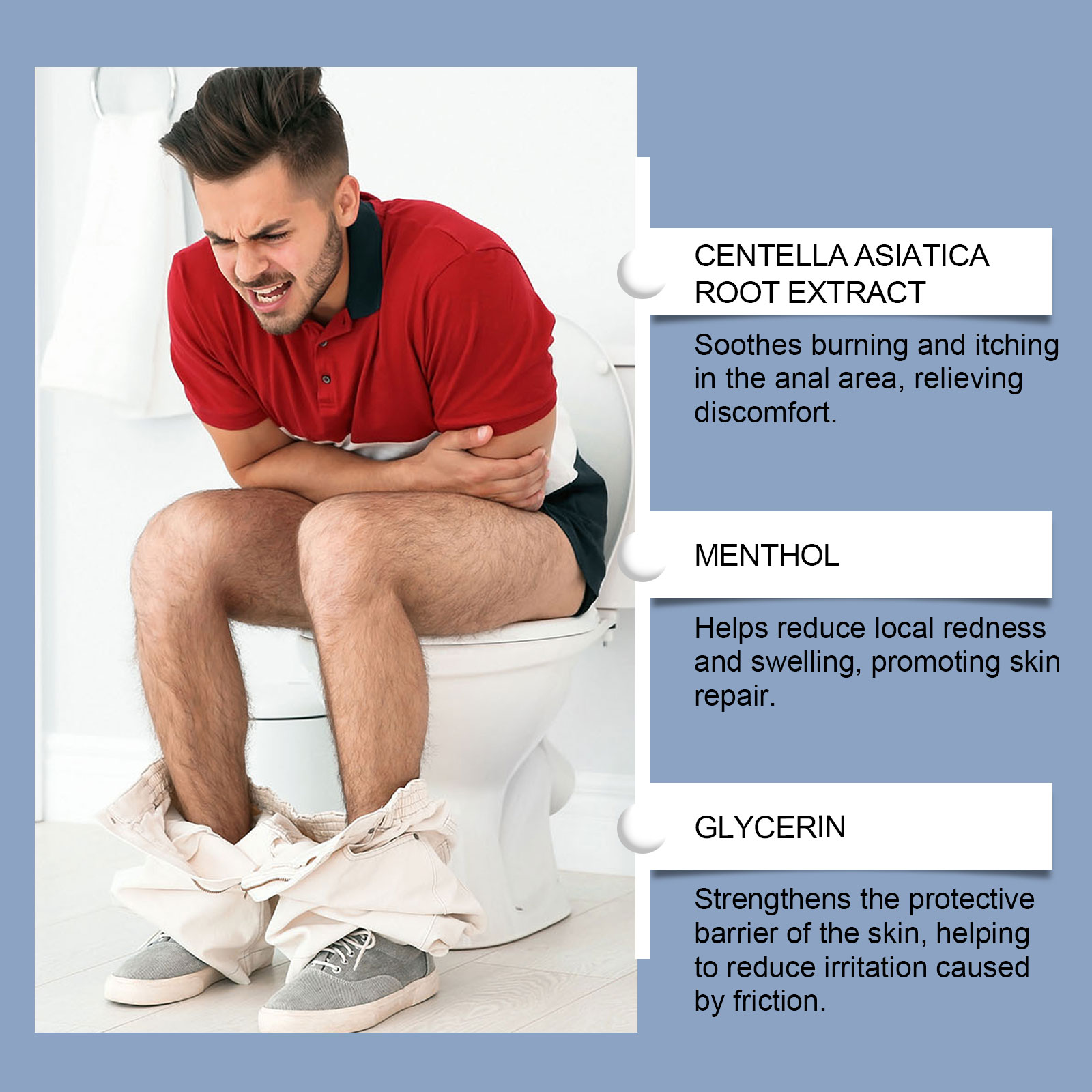 我们的肛周护理霜,由三乙醇胺、尿囊素精心调配而成。专为护理肛周不适,帮助缓解各种症状设计。使用方法极为便捷:1.使用前,清洁肛周皮肤,以去除污垢和油脂,确保其干净干燥。2.使用尖端,将适量本产品涂抹在患处。并且具有不油腻的质地,清爽的配方更容易吸收。