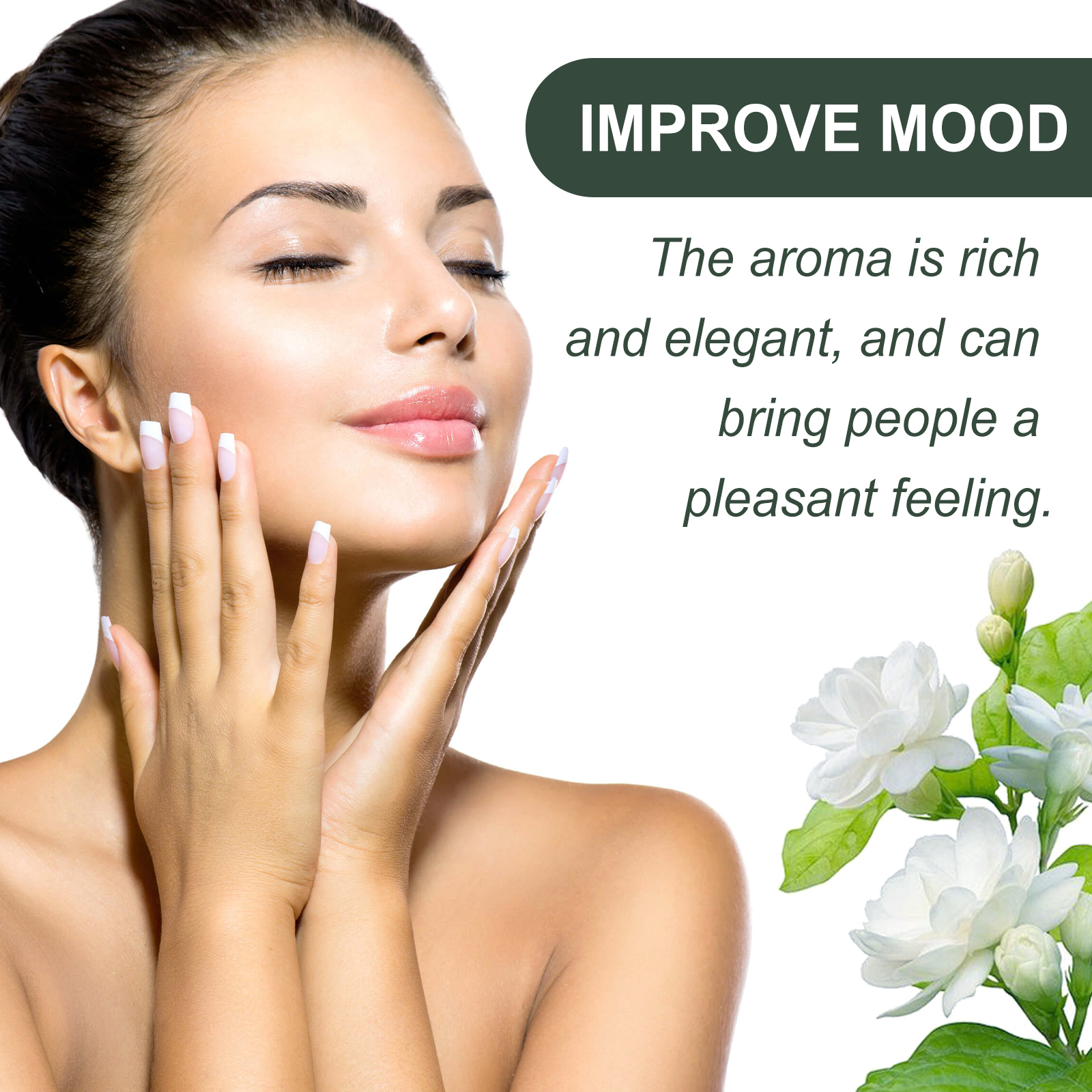 我们的茉莉花按摩精油含有甘油、烟酰胺、玫瑰花油。它可以有效抗氧化,镇静舒缓肌肤,令肌肤美丽润泽。它的使用方法很简单:在洁面或身体后,取适量精油均匀涂抹于所需部位,轻轻按摩直至吸收即可。使用后有助于提亮肤色,增强皮肤弹性,延缓皮肤老化,使皮肤恢复光泽,让你回到年轻的自己。