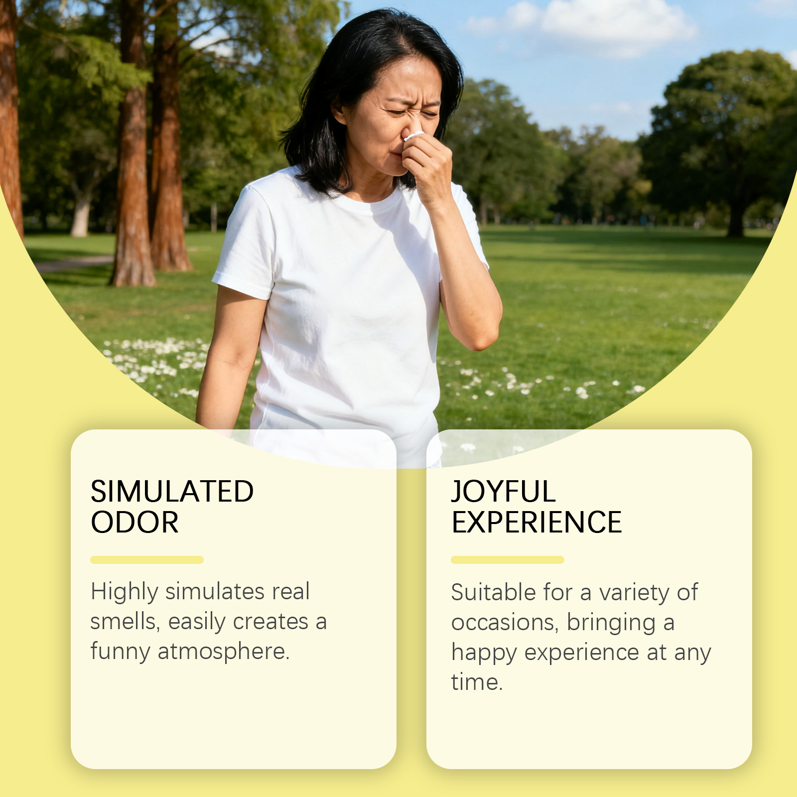 我们的臭味喷雾,由氨水、聚山梨醇酯-80精心调配而成。专为高度模拟真实气味,轻松营造有趣氛围设计。使用方法极为便捷:1. 使用前充分摇匀喷雾,确保气味均匀释放。2. 打开盖子,轻轻按压泵头 2-3 次。3. 喷洒在你想恶作剧的地方,以制造喜剧效果。4.使用后,建议打开门窗以保持空气流通,并尽快消除气味。并且适用于多种场合,随时带来欢乐体验,趣味整蛊工具,助力朋友互动与派对热场。