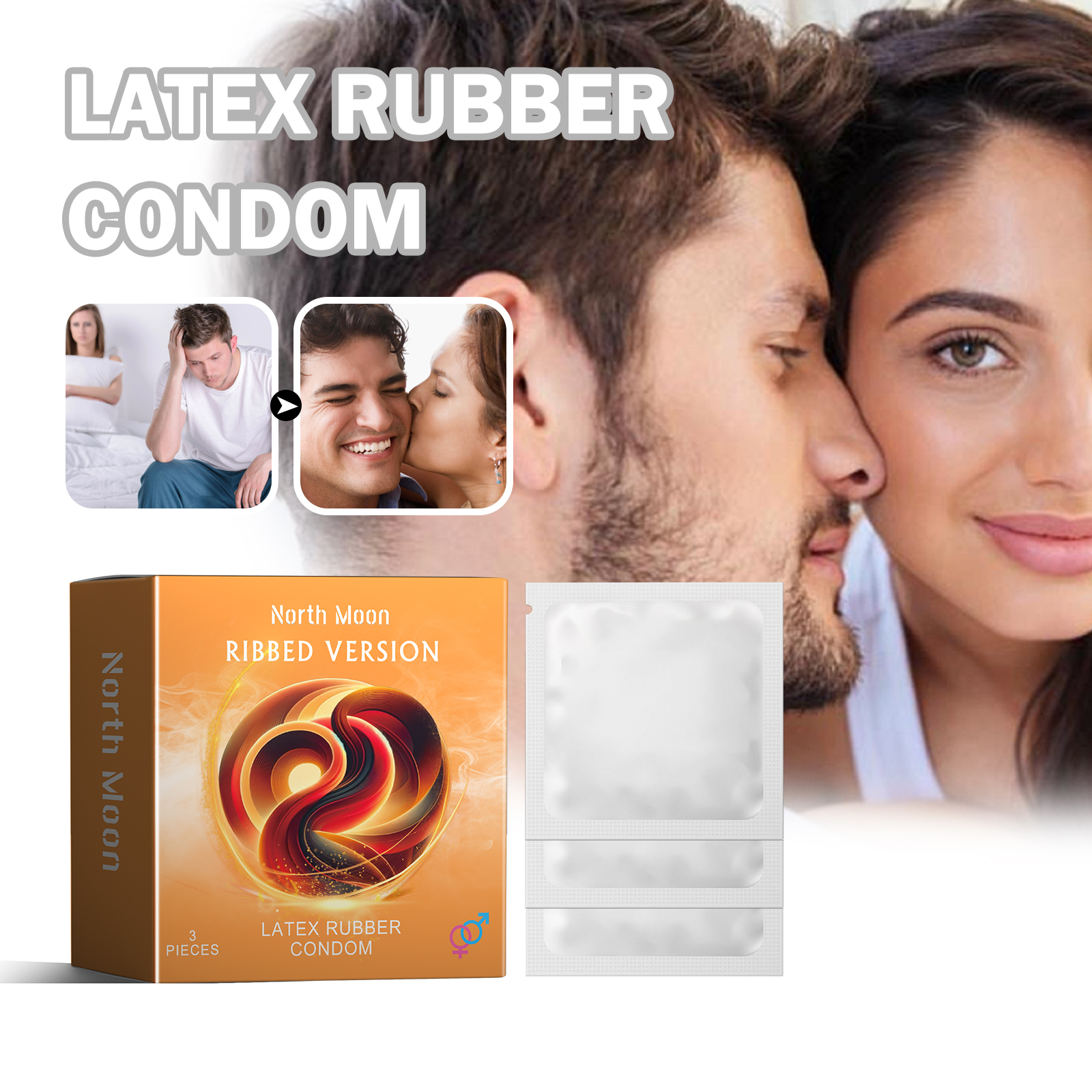 North Moon Latex Rubber Condom, Couple Body Safety Protection Thread Hyaluronic Acid Series