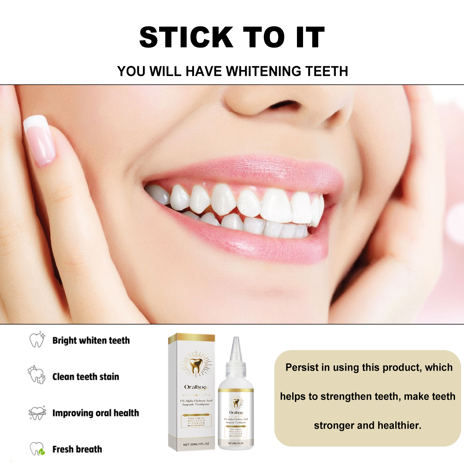 Oralhoe Brightening Toothpaste Deep Cleans Stains, Whitens Teeth, Reduces Bad Breath And Freshens Breath