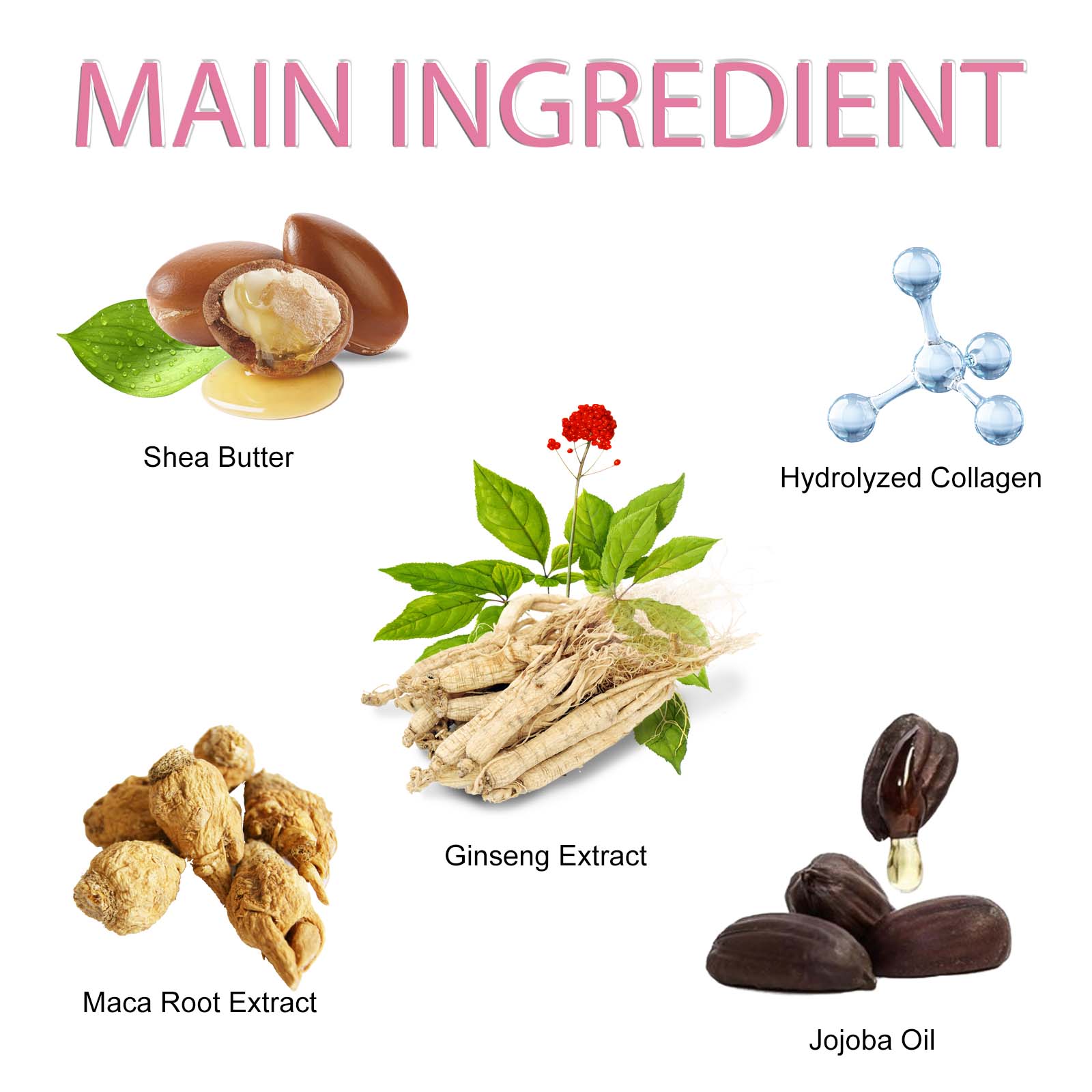 | 成分 | 玛卡根提取物、乳木果油、人参提取物 |