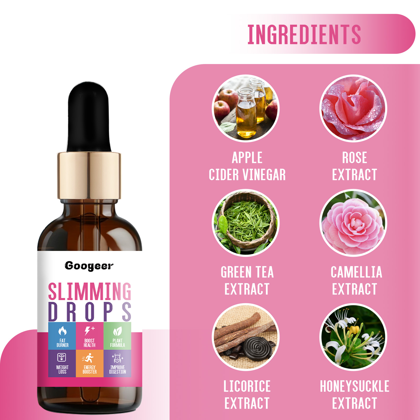 Googeer Slimming Drops, Body Shaping Slimming Brain Strengthening Vitality Body Care Oral Supplement Drops