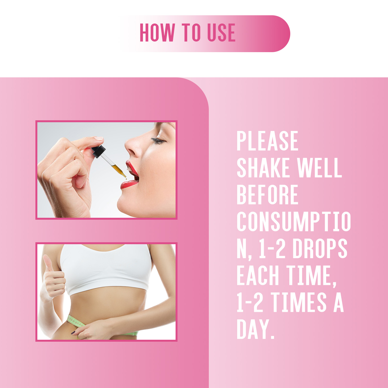 我们的膳食补充剂含有苹果醋,玫瑰提取物,绿茶提取物。它可以帮助燃烧脂肪,改善松弛下垂的肌肤,令肌肤紧致细腻,能深度放松肌肉,减轻肌肉疲劳。它的使用方法很简单:食用前摇匀,每次1-2滴,每天1-2次。有助于燃烧脂肪,减轻体重,使你看起来更苗条,帮助你变得更自信。