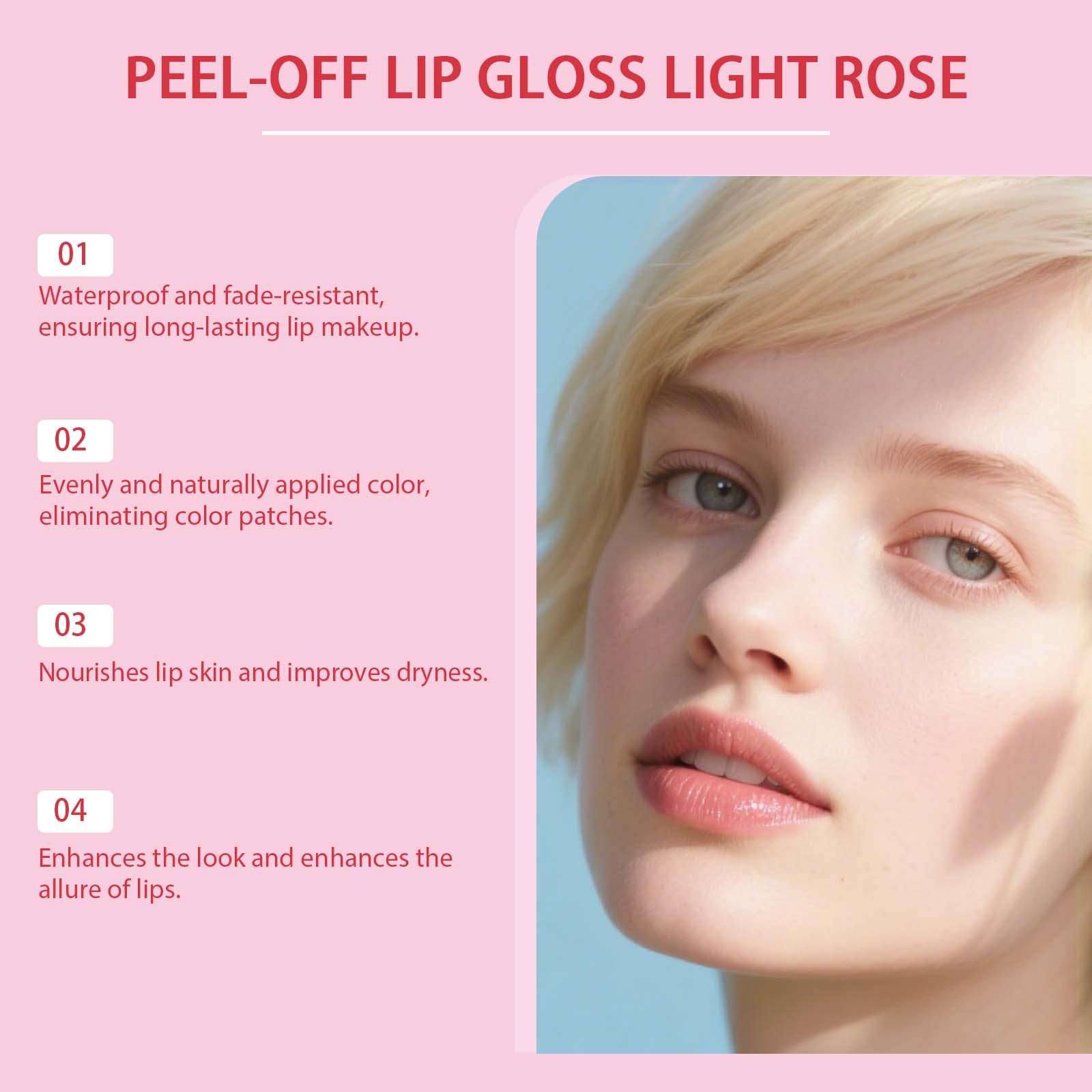 我们的撕拉式染唇彩,由聚乙烯醇、甘油精心调配而成。专为能长时间维持唇部妆容,减少补涂频率,上色时均匀覆盖双唇,避免出现色块不均问题,呈现静置唇妆效果设计。使用方法极为便捷:1.清洁唇部肌肤并保持干燥。2.使用附带的涂抹器将本品均匀地涂在唇线上,涂抹得足够厚以形成一层薄膜。3.等待10-15分钟,让薄膜形成一层透明薄膜,从嘴角开始,轻轻捏住薄膜的边缘,沿着唇线将其揭下即可。并且它可以在打造唇妆的同时滋养唇部,改善唇部干燥,维持唇部舒适状态,助力提升整体妆容精致度,增强唇部魅力,适配多种场合的妆容需求。