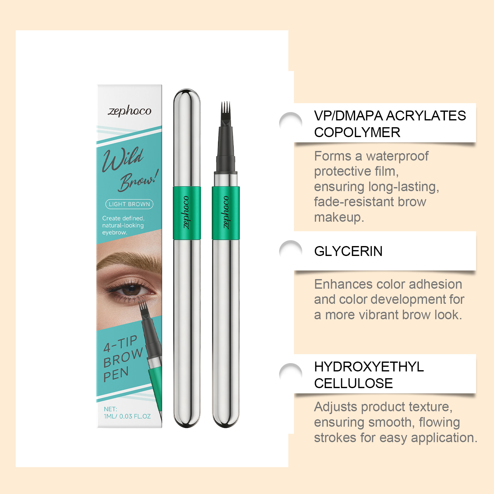 zephoco Three-Dimensional Natural Four-Pronged Eyebrow Pencil Is Light Brown And Can Hold Makeup For Daily Use Without Easily Smudding It Is Easy For Beginners To Handle