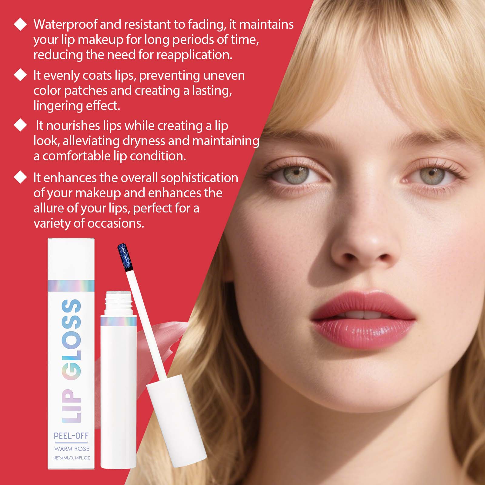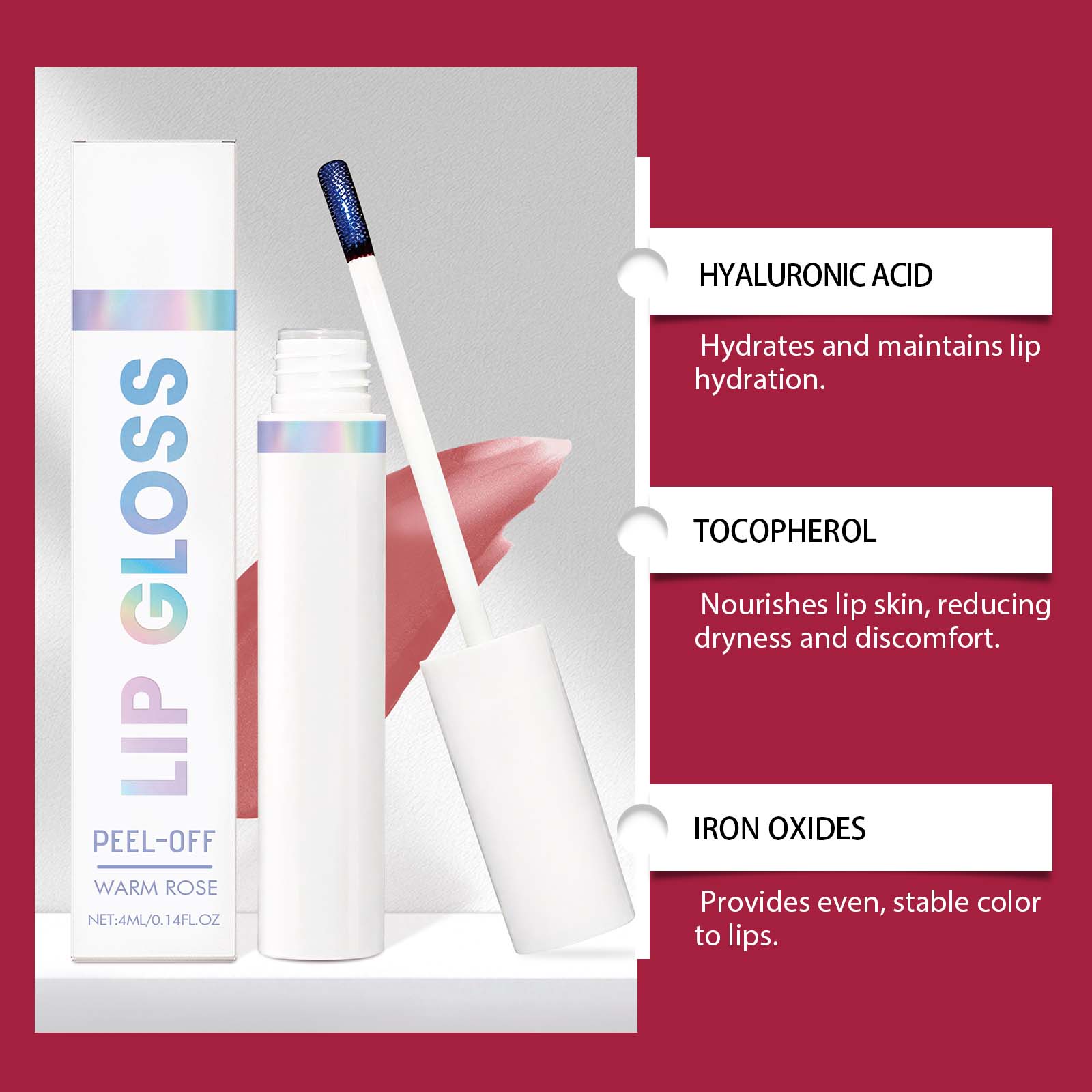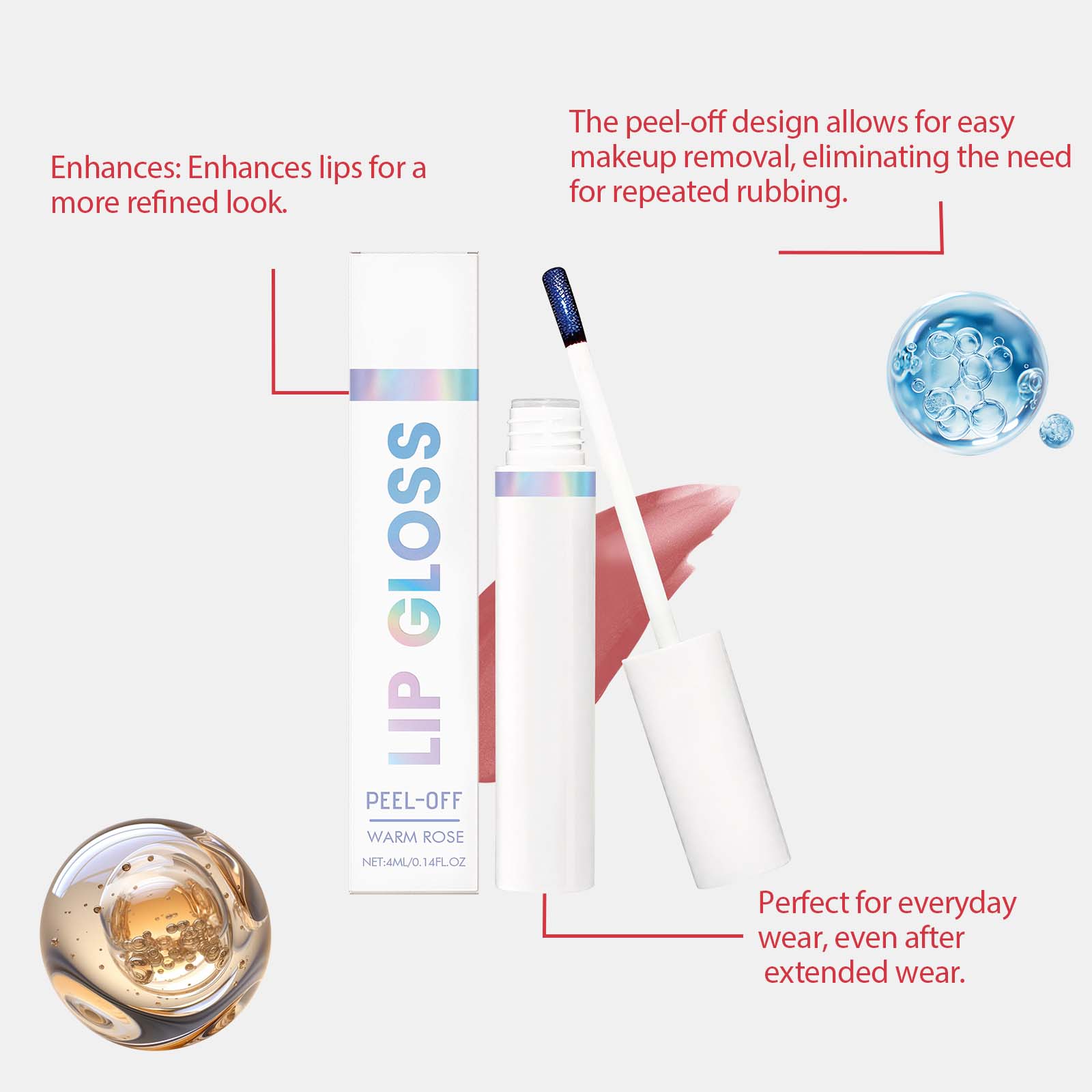 AMZ The Peel-Off Dyeing Lip Gloss Naturally Shows Color, Nourishes The Lips, Makes Them Smooth And Easy To Apply, And Gives A Lustrous Sheen. It Is A Portable Lip Gloss For Daily Use
