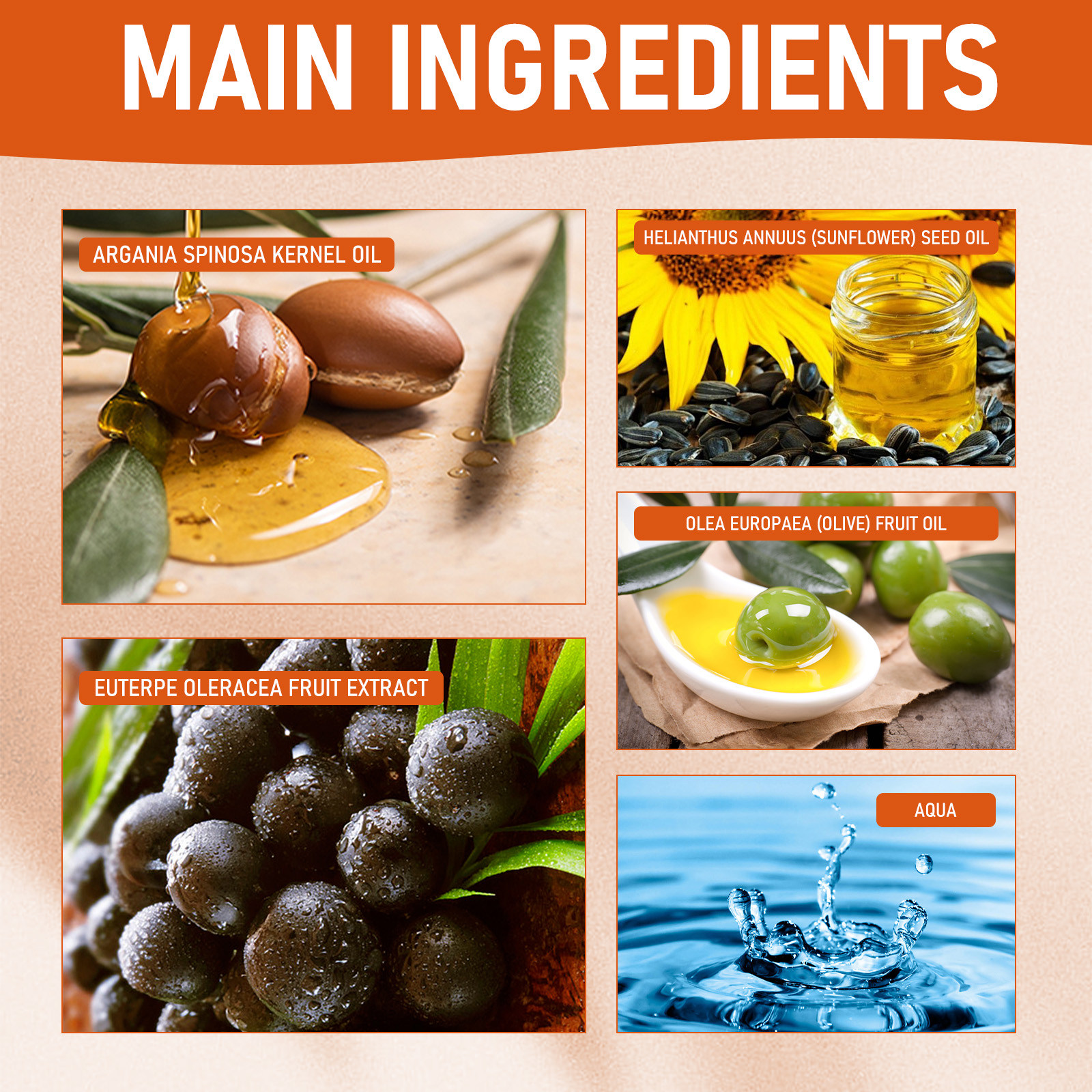 | 成分 | 摩洛哥坚果油、巴西莓提取物、葵花籽油 |