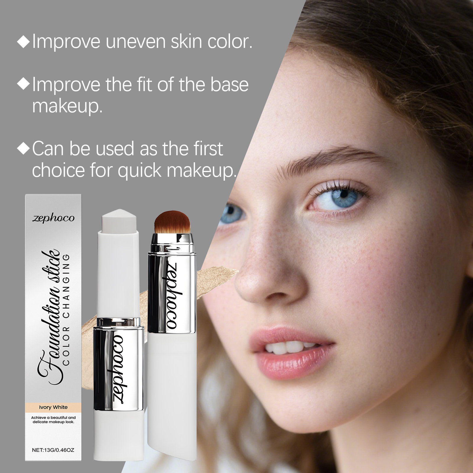 zephoco Ivory White Concealer Color-Changing Foundation Stick Offers A Hydrating And Fine Texture For Daily Moisturizing. It Provides A Natural Matte And Clear Makeup Effect