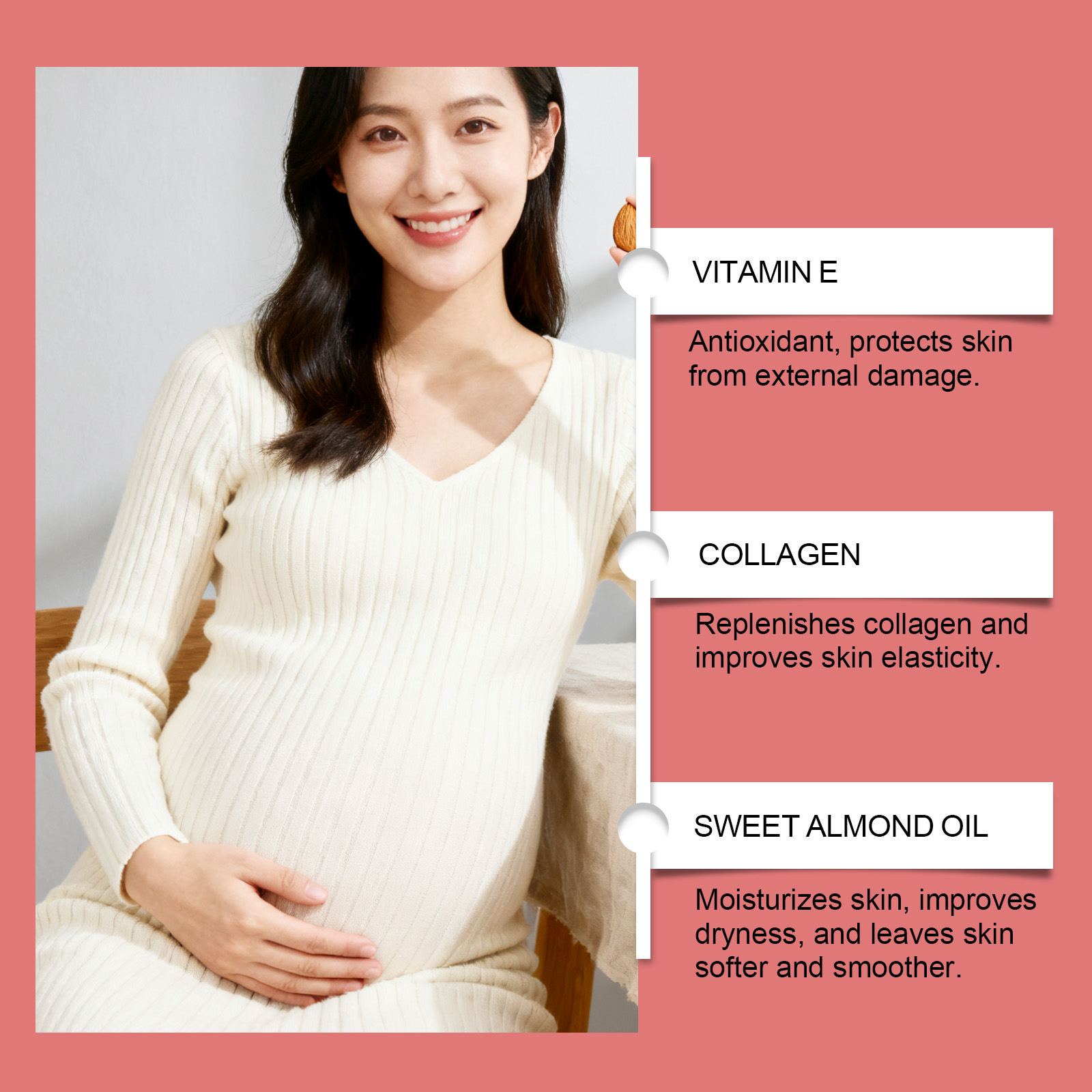 我们的孕期身体护理油,由胶原蛋白、甜杏仁油精心调配而成。专为皮肤补充营养并减少干燥设计。使用方法极为便捷:1.清洁并擦干皮肤。2.将适量产品均匀涂抹在腹部的妊娠纹上。3.轻轻按摩直至吸收。并且可以长期使用,可逐渐减少细纹。