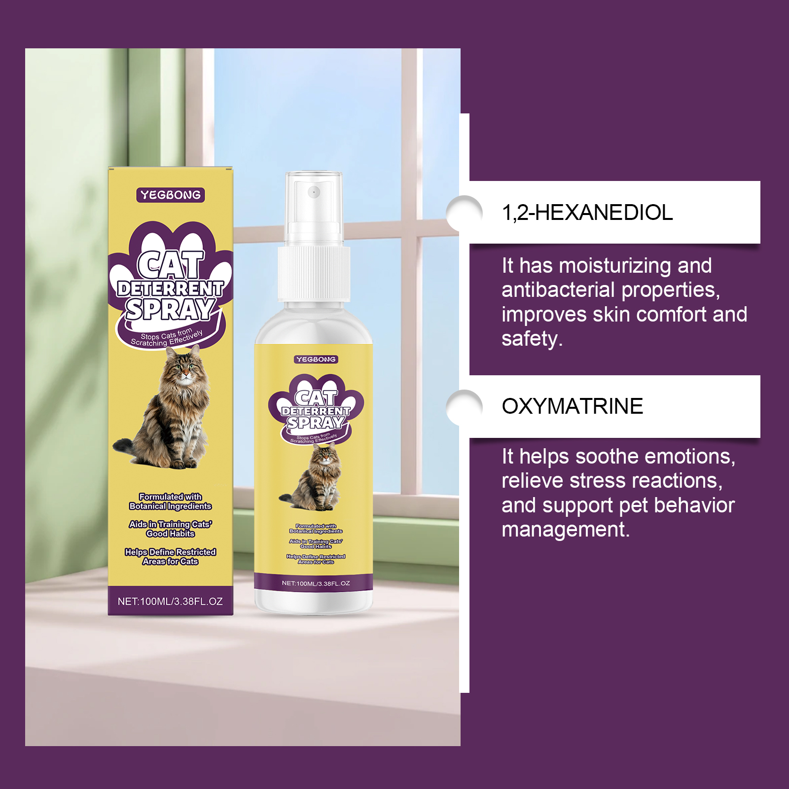 Yegbong Cat Scratch Repellent Spray, Gentle Formula, Comfortable Cat Guidance, Cat Behavior, Furniture Protection