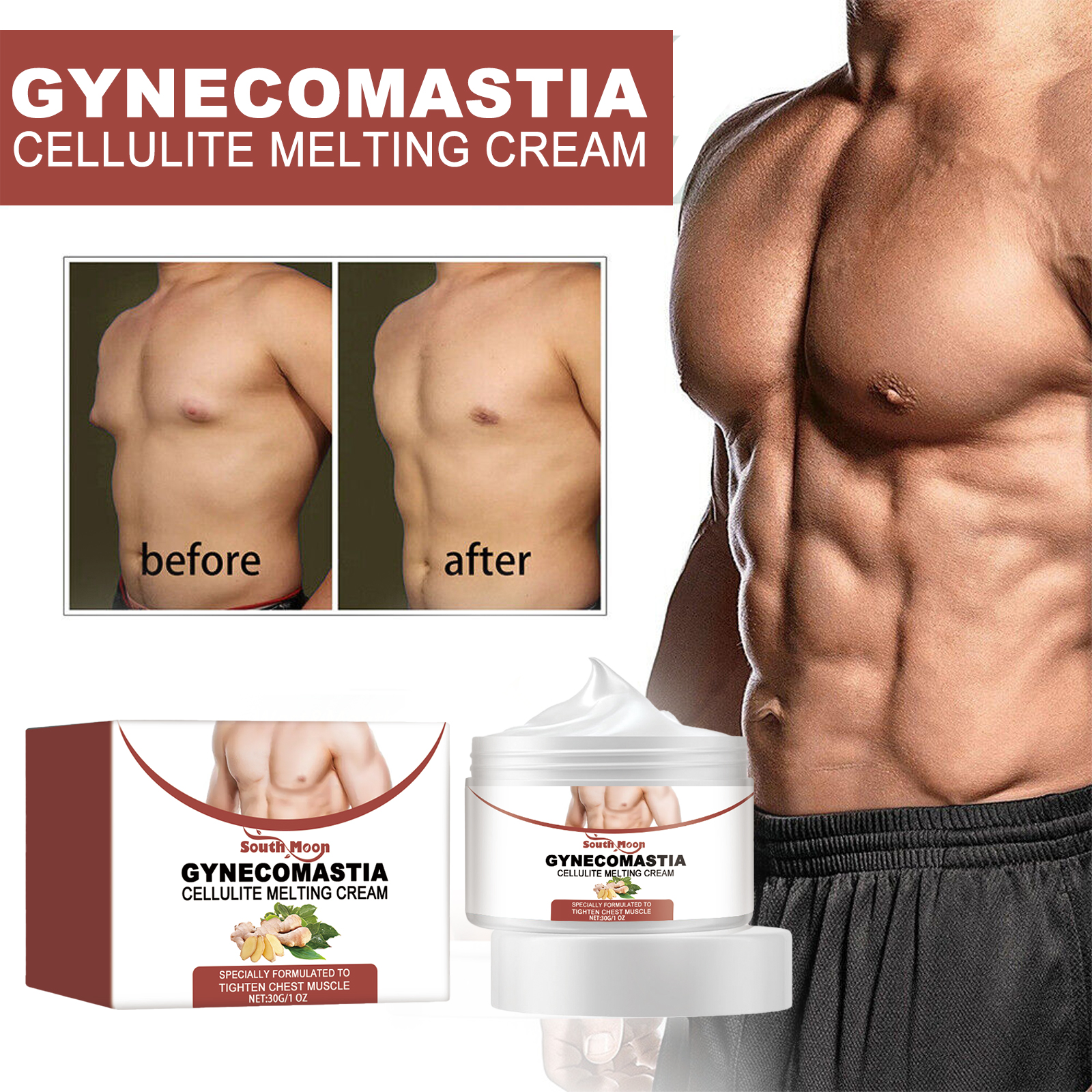 我们的男士胸部紧致霜含有三乙醇胺、胡椒果油、姜根油。它可以消除多余的乳房组织,有效缩小乳房面积,减少男性乳房发育的同时防止未来乳房增脂积累。它的使用方法很简单:使用前清洁并擦干身体皮肤,取适量本品均匀涂于胸部,用手轻轻打圈按摩至吸收即可。使用后加强和刺激胸部脂肪,收紧胸部肌肉,增强阳刚之气。