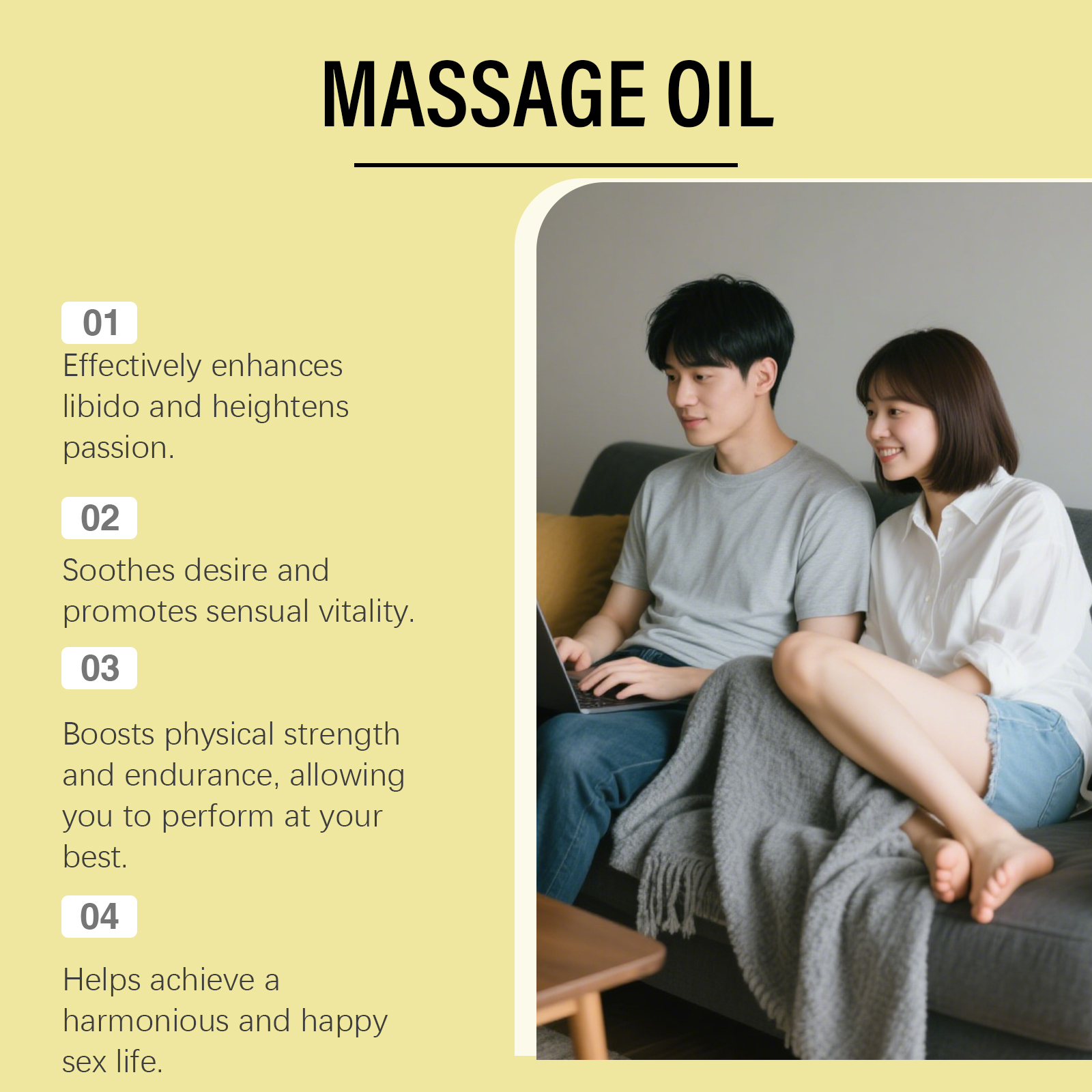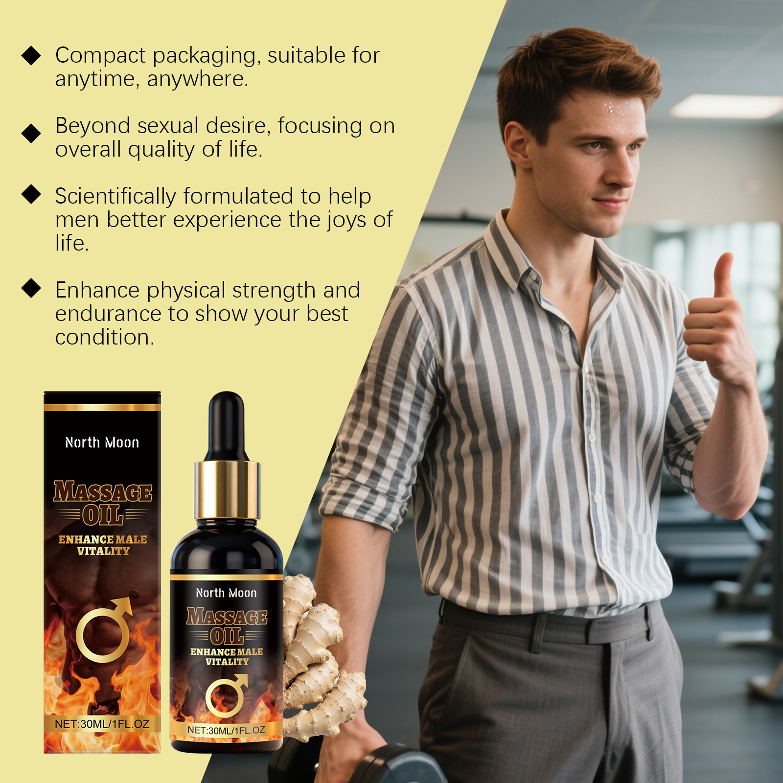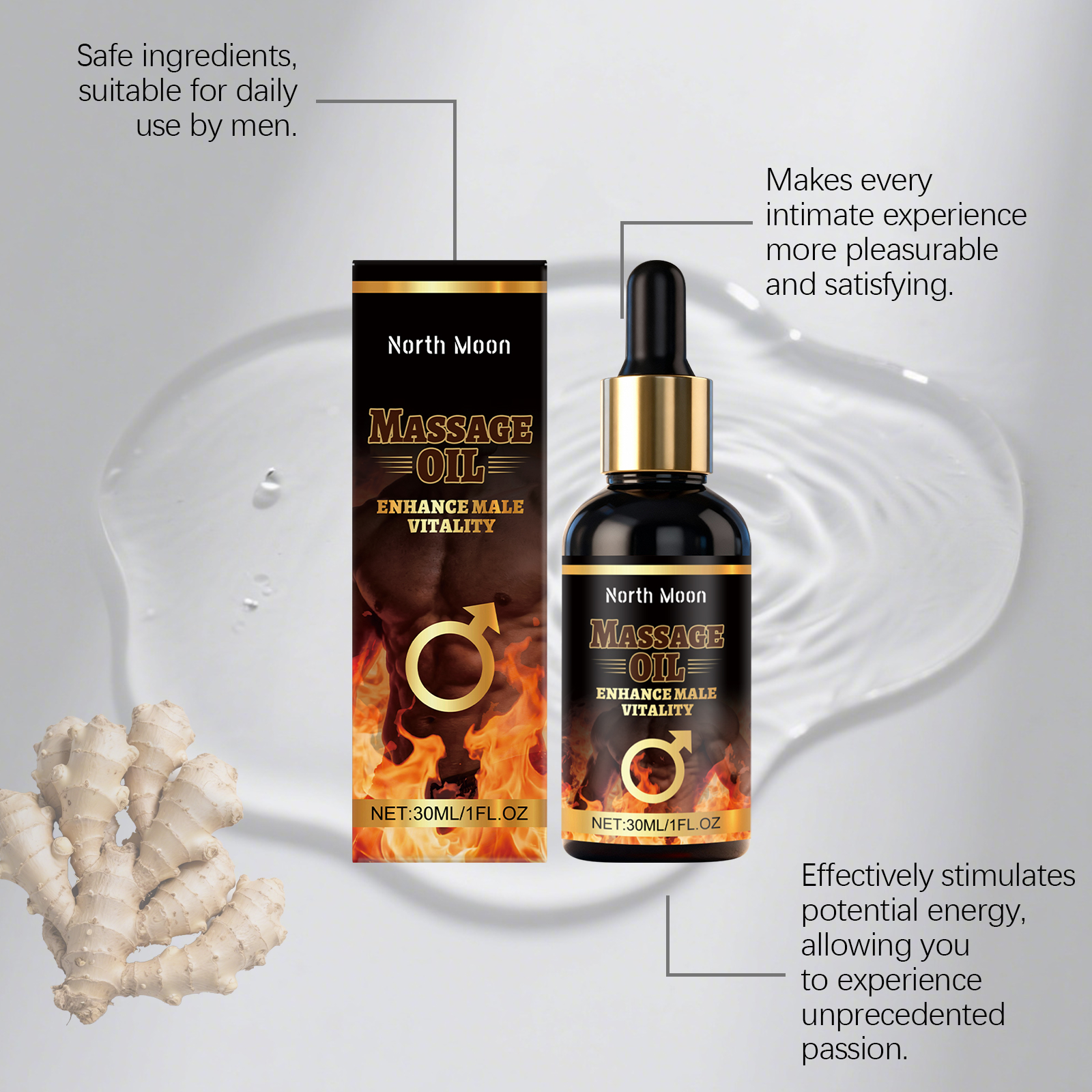 我们的男士护理按摩油,由甘油、生育酚(维生素E)精心调配而成。专为增强阴茎敏感度,提升性欲,提升性能力设计。使用方法极为便捷:1.清洁皮肤并保持干燥。2.取适量本品均匀涂抹于私处。3.轻柔按摩促进吸收。并且它可以增强勃起功能,促进细胞再生,增强勃起硬度,缓解疲劳,提高持久力,增强性爱乐趣。