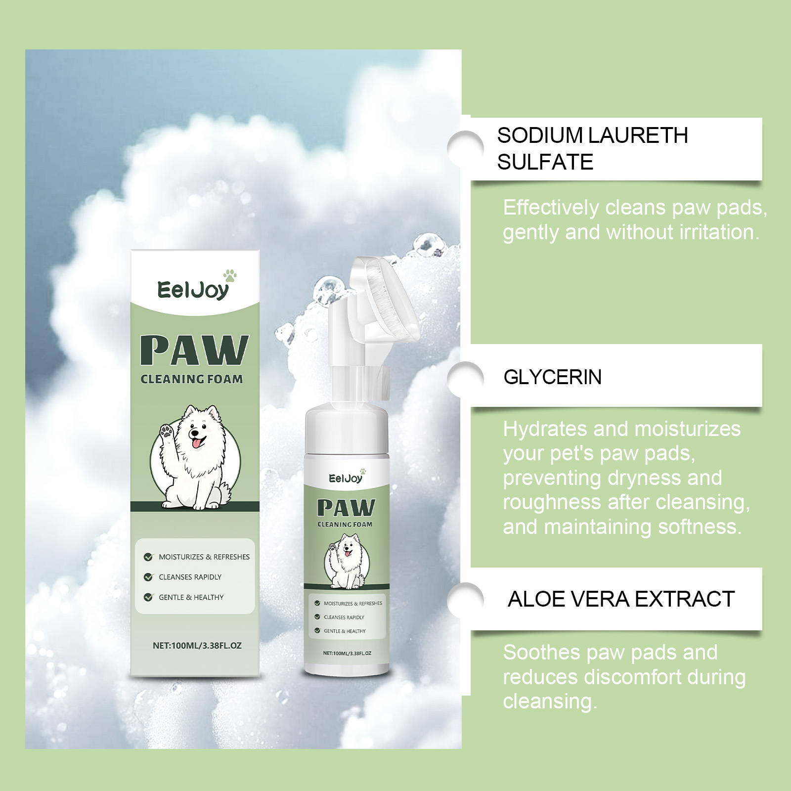 EelJoy Pet Paw Cleaner Has Fine Foam, Is Easy To Rinse Off, Refreshing And Clean, And Is Suitable For Daily Care Of Odors And Dirt