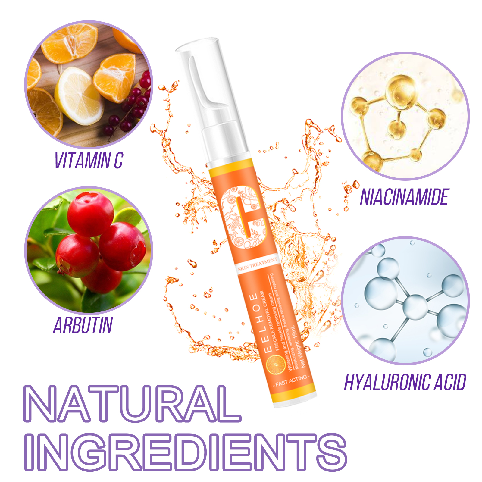 我们的面部护理液含有维生素C、烟酰胺、熊果苷。它有助于改善暗沉,去除皮肤杂质,提亮肤色,肤色均匀透明,滋润和滋养光滑和水润的皮肤。它的使用方法很简单:轻轻按压,挤出适量的液体,涂抹在黑色素上,把笔对准黑色素区域,用手指均匀涂抹,打圈按摩10秒后轻拍至吸收。使用后皮肤光洁无瑕又一尘不染,毫不费力,安全无忧!