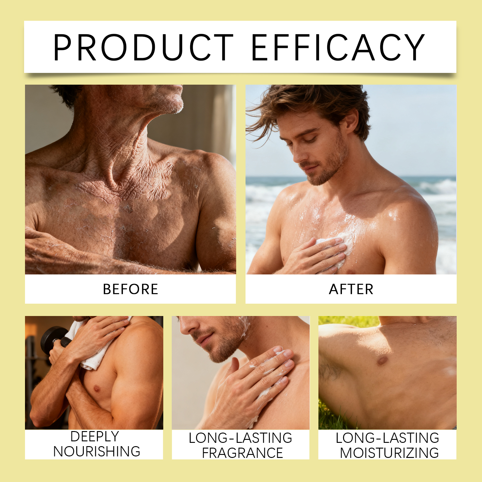 我们的男士香氛身体乳,由葡萄柚提取物、牛油果树提取物精心调配而成。专为皮肤提供持久的保湿效果设计。使用方法极为便捷:清洁并擦干皮肤。取适量均匀涂抹于面部和身体。轻轻按摩至吸收。并且可以适合敏感肌肤日常使用。