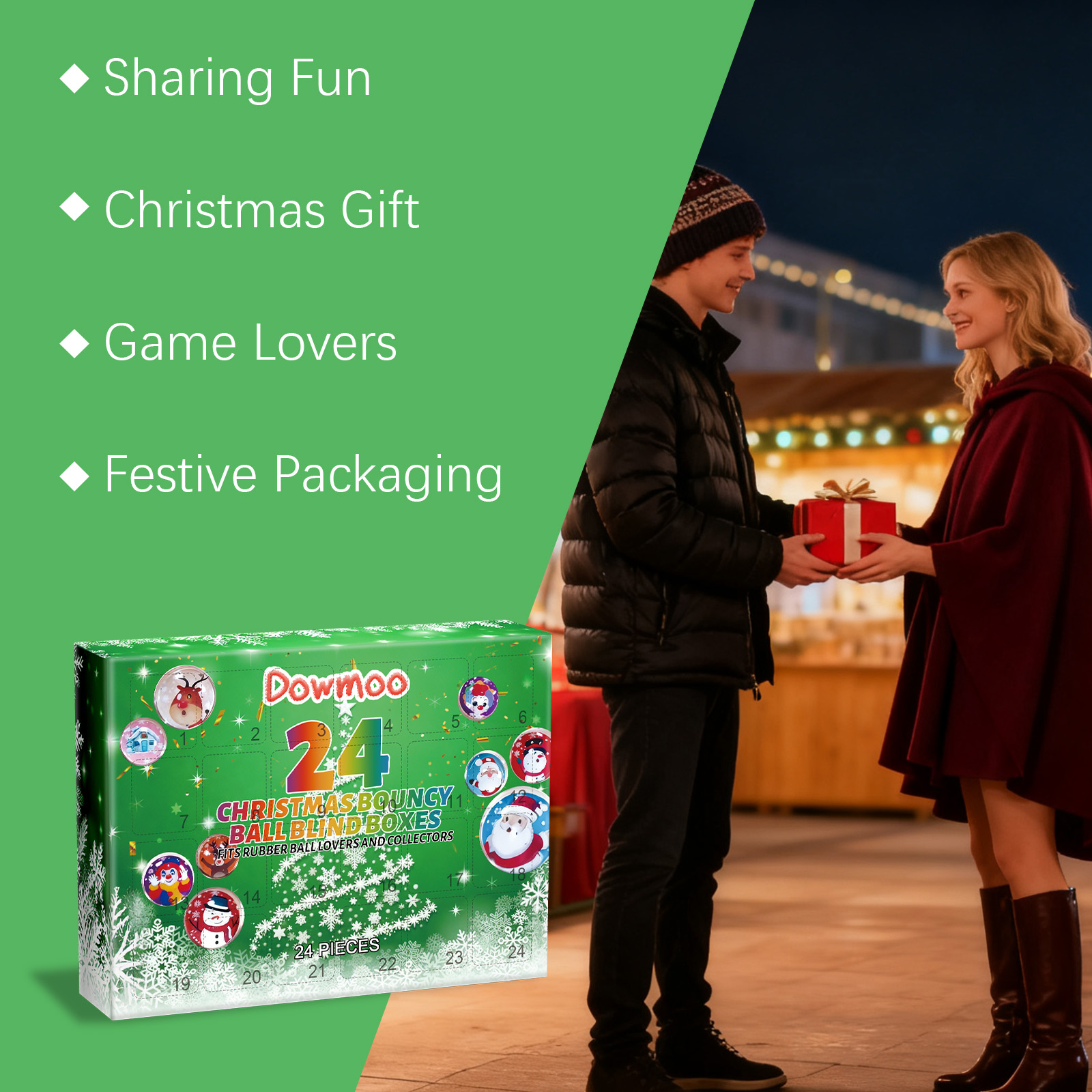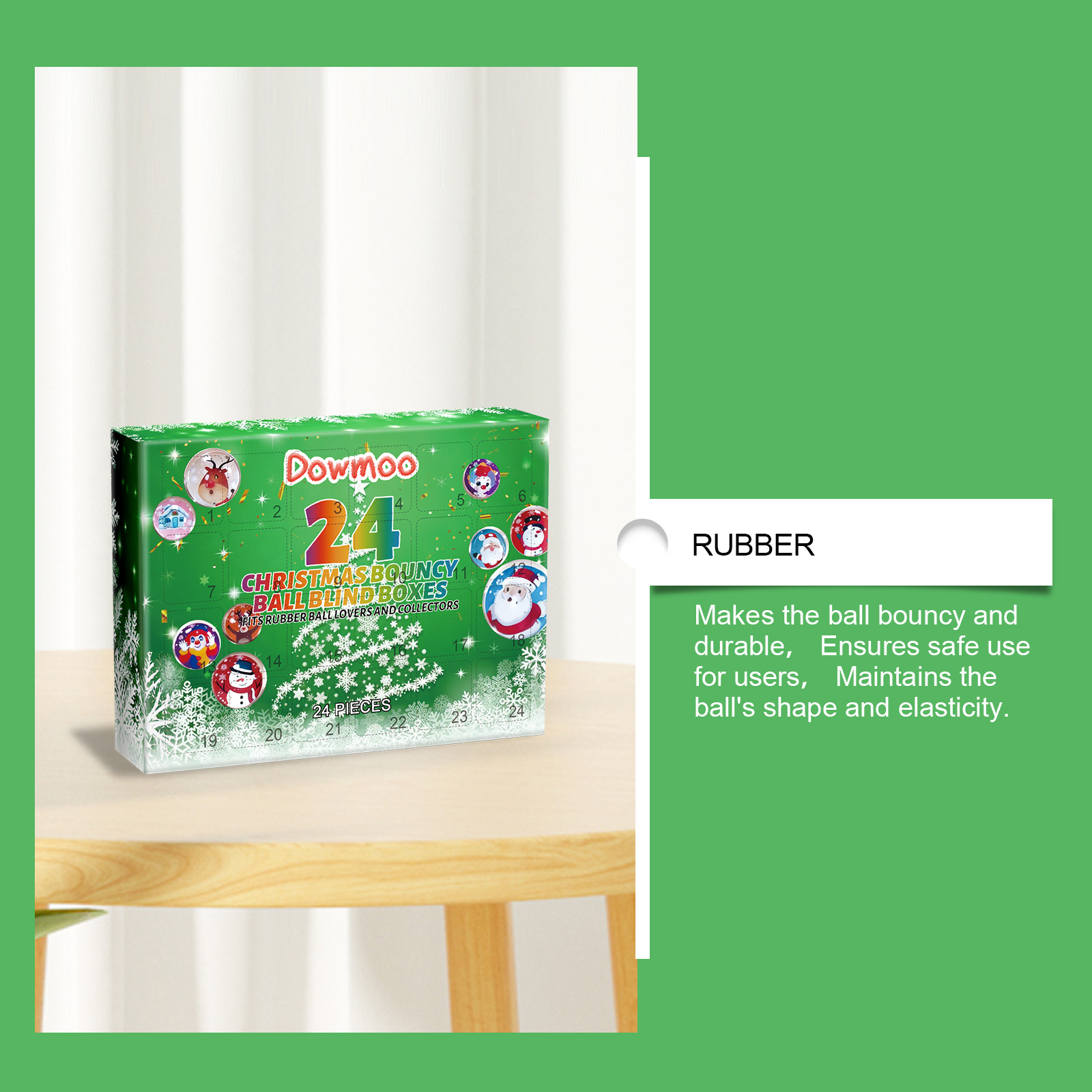 我们的24格圣诞弹力球盲盒,由橡胶精心调配而成。专为提供与朋友分享的乐趣,作为惊喜的圣诞礼物,满足游戏爱好者的需求,为假日倒计时带来欢乐设计。使用方法极为便捷:圣诞节期间与朋友分享。向游戏爱好者赠送礼物。收集弹力球作为一套。用来活跃节日气氛。并且它是收藏家的理想选择,增添圣诞惊喜。