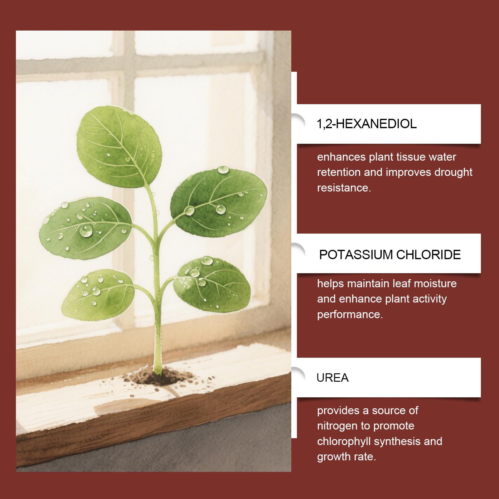 我们的植物根部营养肥,由甘油、尿素精心调配而成。专为有助于支持植物的健康生长与全面发育设计。使用方法极为便捷:1.拧开瓶盖,然后轻轻挤压瓶子。2.然后,将溶液均匀地涂抹在植物周围的土壤上,直至土壤完全湿润。3.每 7 至 15 天使用一次,但需根据实际情况调整用量。它可用于滴灌、淋灌或根部灌溉,并且需要均匀涂抹。并且它可以增强植物对水分与养分的吸收能力,提升整体生长活力,适用于室内外多种植物类型,包括盆栽植物、观叶植物和花卉等。
