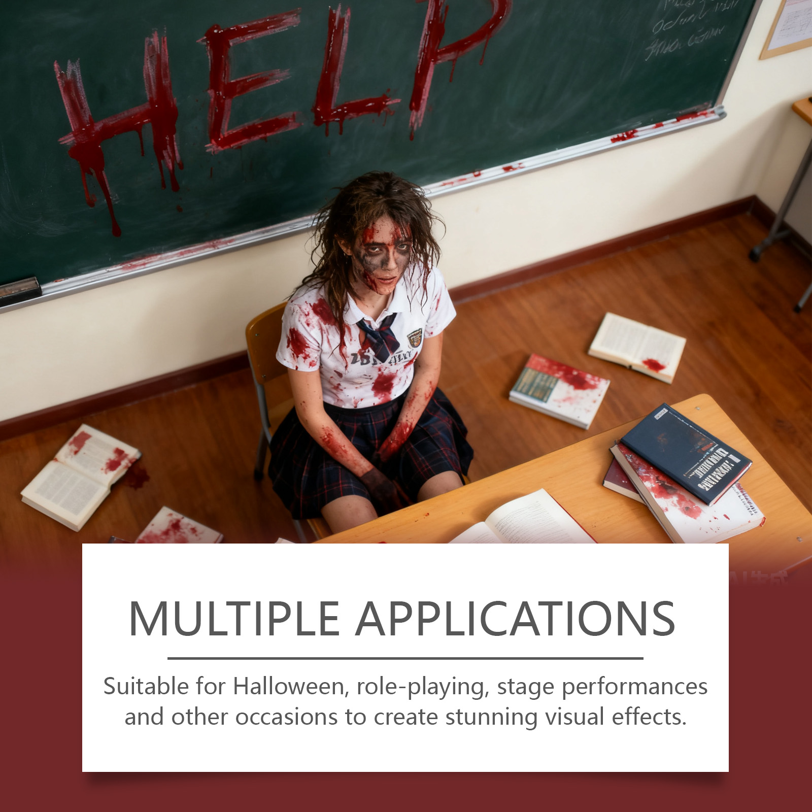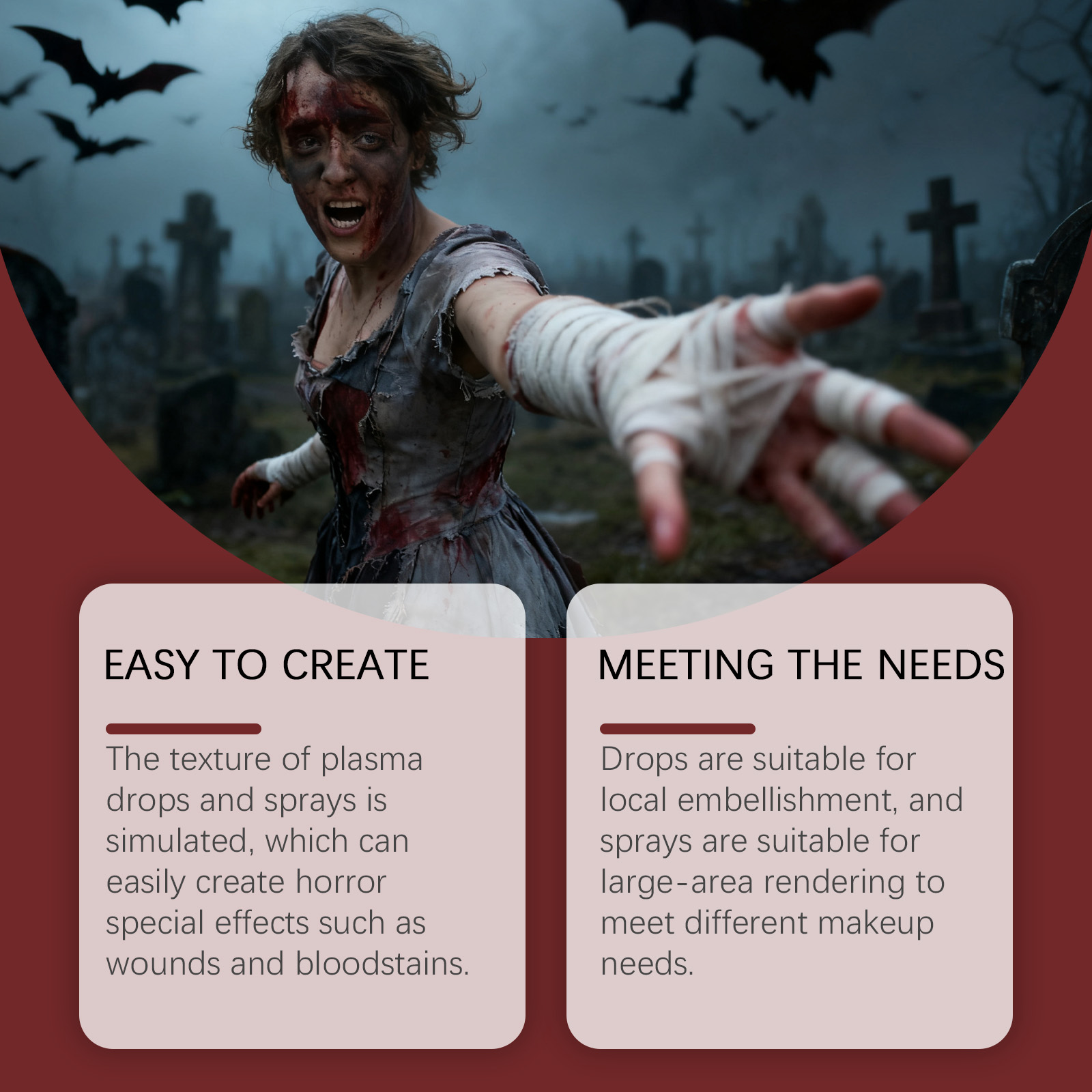 我们的万圣节血浆喷雾,由纤维素、1,2-己二醇精心调配而成。专为满足不同的化妆需求设计。使用方法极为便捷:清洁皮肤并保持干燥。在脸部、手臂或腿部等部位均匀喷洒适量本产品。并且可以适用于万圣节、角色扮演、舞台表演等场合,以创造令人惊叹的视觉效果。