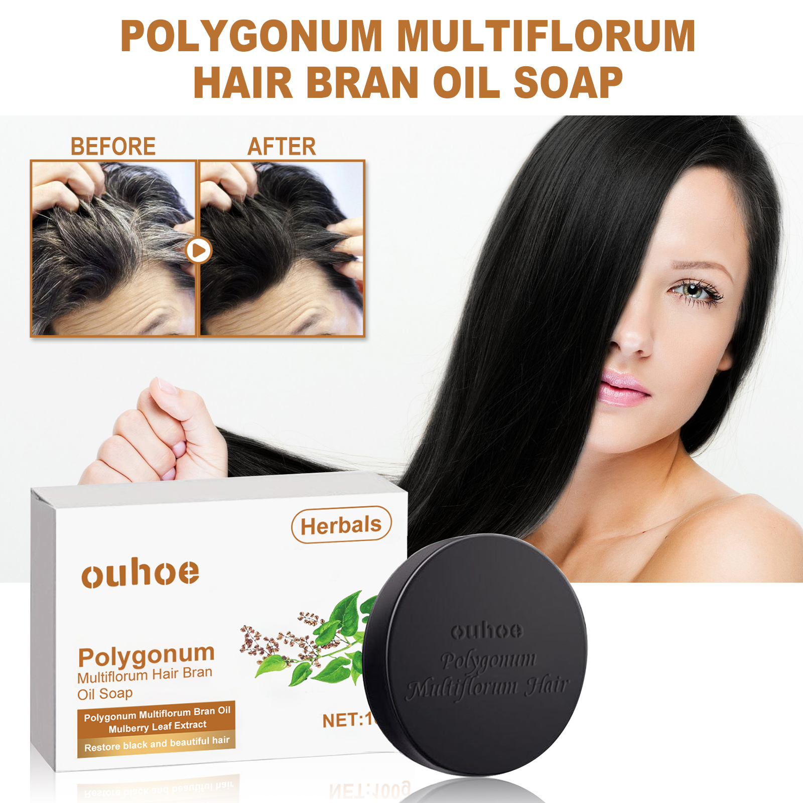 OUHOE Polygonum Multiflorum Shampooing Soap, Hair Cleansing Natural Dense Moisturizing Black Hair Soap