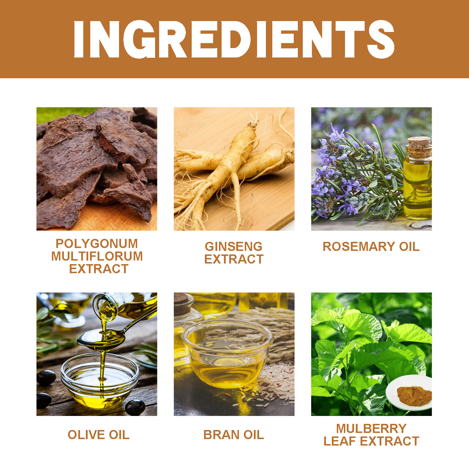 | 成分 | 何首乌提取物、人参提取物、迷迭香油 |