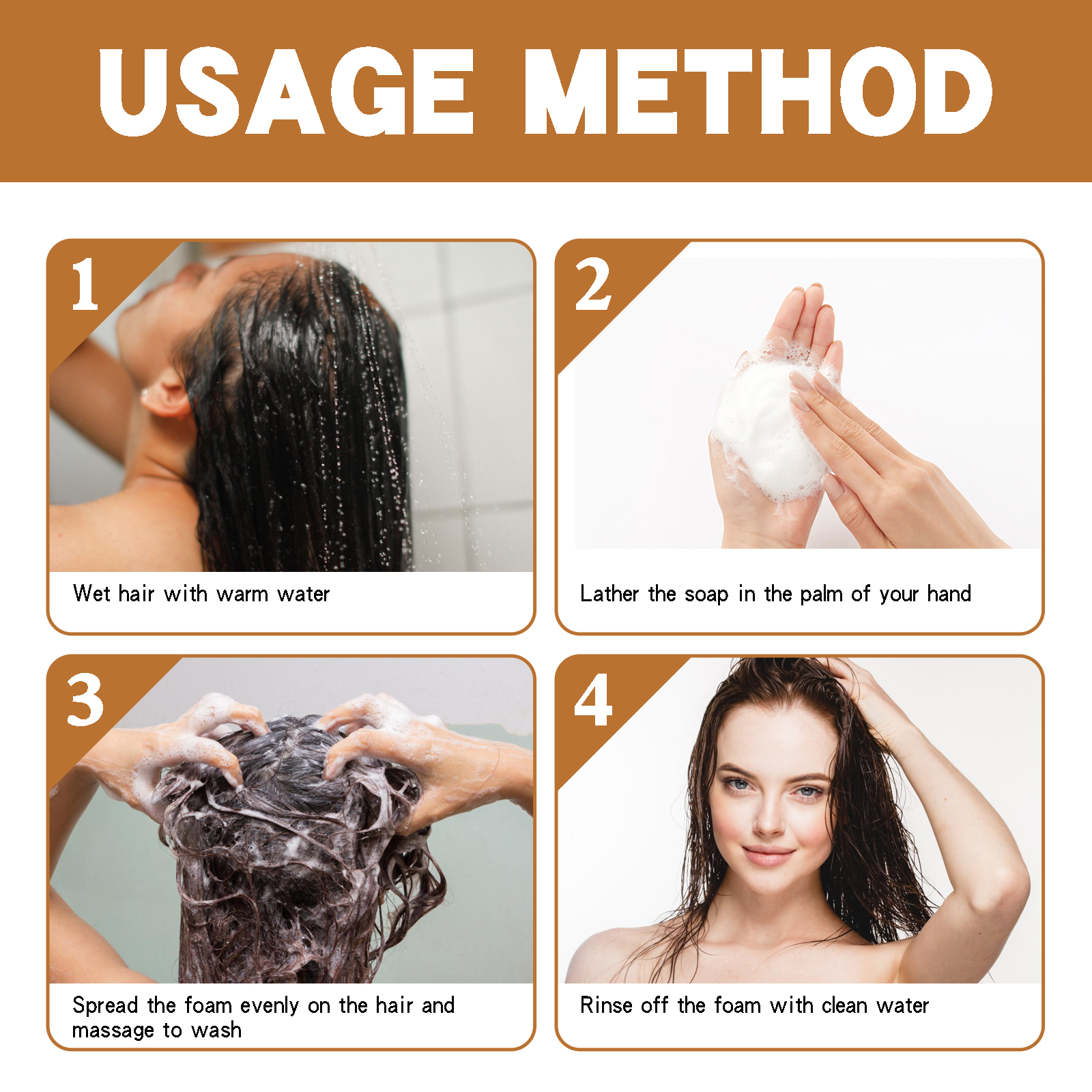 我们的何首乌洗发皂含有何首乌提取物、人参提取物、迷迭香油。它可以重焕黑亮秀发,修复头发结构,消除发螨,减少头皮屑,紧致头发防止脱发。它的使用方法很简单:首先用温水打湿头发,然后在你的手掌上搓出肥皂泡沫,将泡沫均匀涂抹在头发上,按摩洗净,最后用清水洗净泡沫。坚持使用可以促进黑色素细胞的生成,修复头发的头皮结构,消除发螨,让您的头发更加浓密和乌黑亮丽。