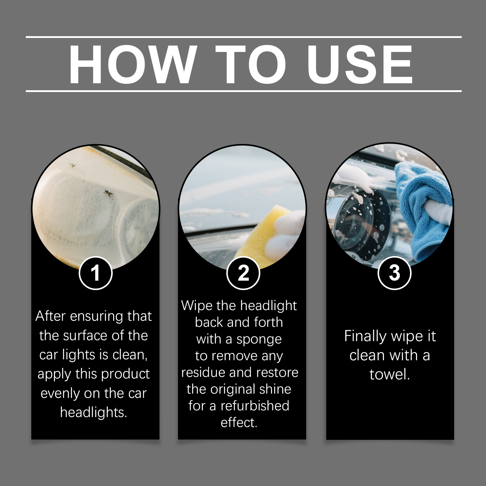 我们的大灯护理套件,由乙烯共聚物 、1,2-己二醇精心调配而成。专为保持前灯表面状态设计。使用方法极为便捷:确保车灯表面干净后,将本产品均匀涂抹在车前大灯上。用海绵来回擦拭大灯,以去除任何残留物并恢复原始光泽,达到翻新效果。最后用毛巾擦干净。并且有助于提高前灯透明度。