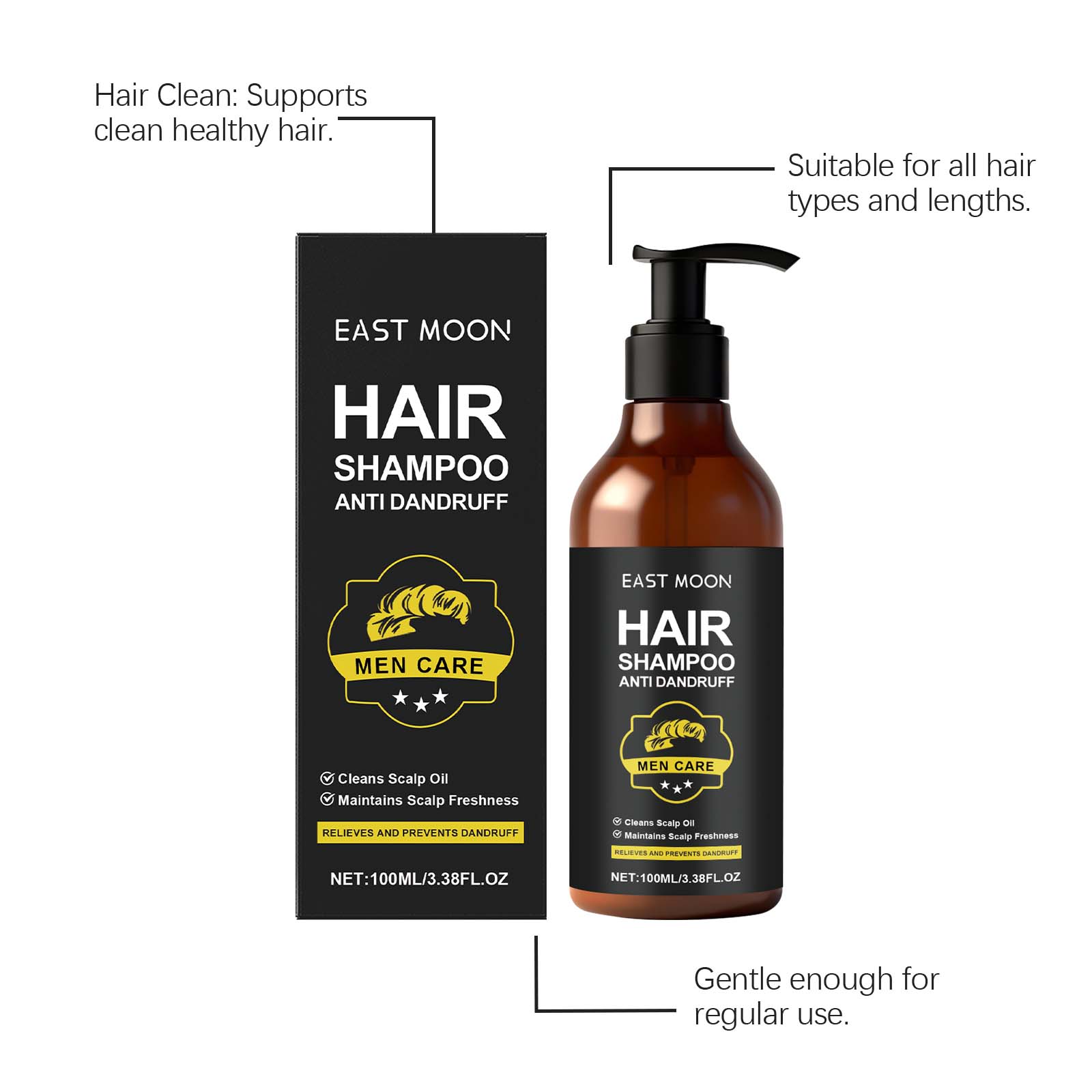 East Moon Men's Hair Oil Shampoo Refreshing And Clean Scalp, Dandruff, Hair Oil, Fluffy And Moisturizing Shampoo