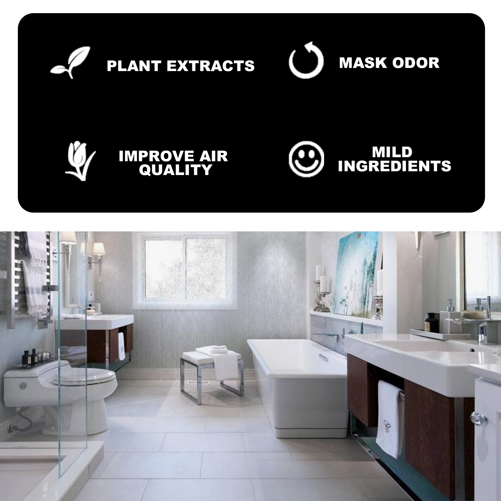 我们的芳香清新厕所喷雾含有薰衣草油、橙花油、薄荷油。它可以掩蔽、中和厕所异味,使空气更清新,有助于改善室内空气质量,创造宜人的环境。它的使用方法很简单:只需在离开前将本品喷在抽水马桶的水面上几次,即可消除令人不快的气味。有助于改善室内空气质量,创造宜人的环境。