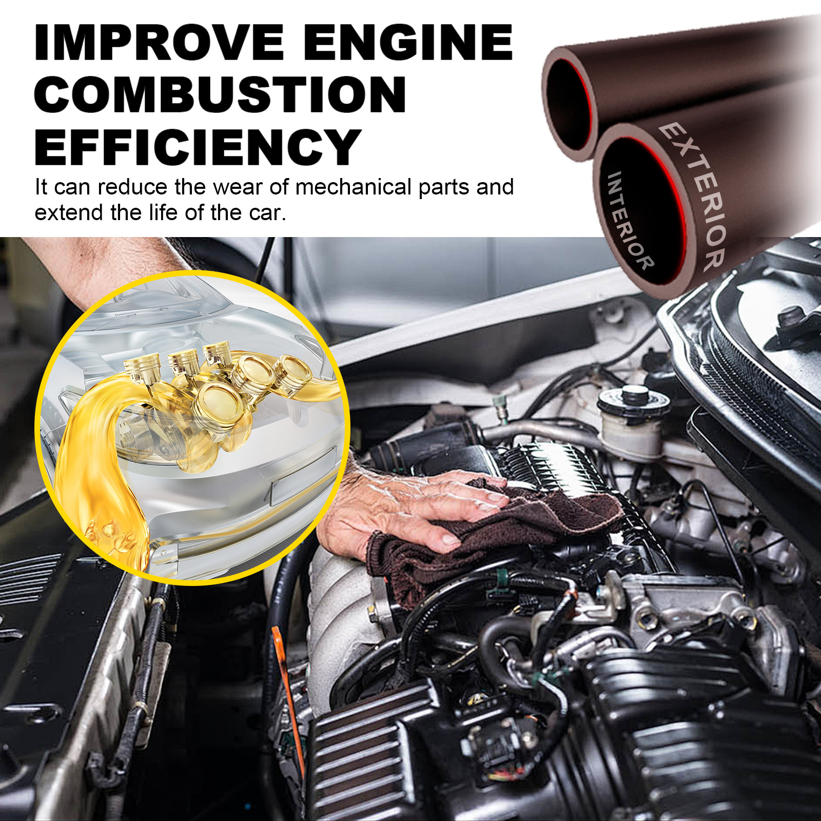我们的汽车全管道清洁套装含有表面活化剂、螯合剂、渗透剂。它可以清除管道中的积碳和沉积物,有助于恢复发动机和排气系统的正常工作。它的使用方法很简单:先将本品均匀喷在管道上,再用海绵来回擦拭,最后用毛巾擦拭干净即可。可以减少机械零件的磨损,延长汽车的使用寿命。