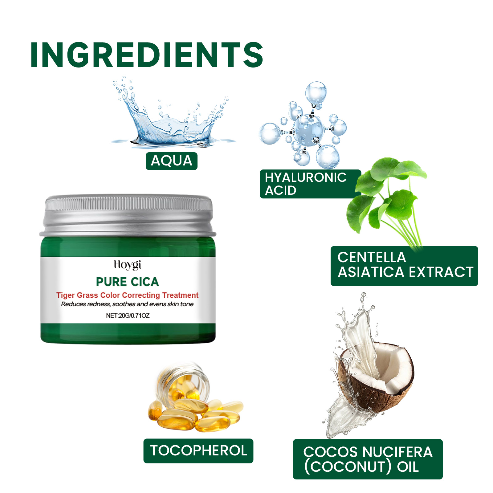 Hoygi Pure Cica, Repair Pigmentation Acne Anti-Dryness Deep Moisturize Even Skin Tone