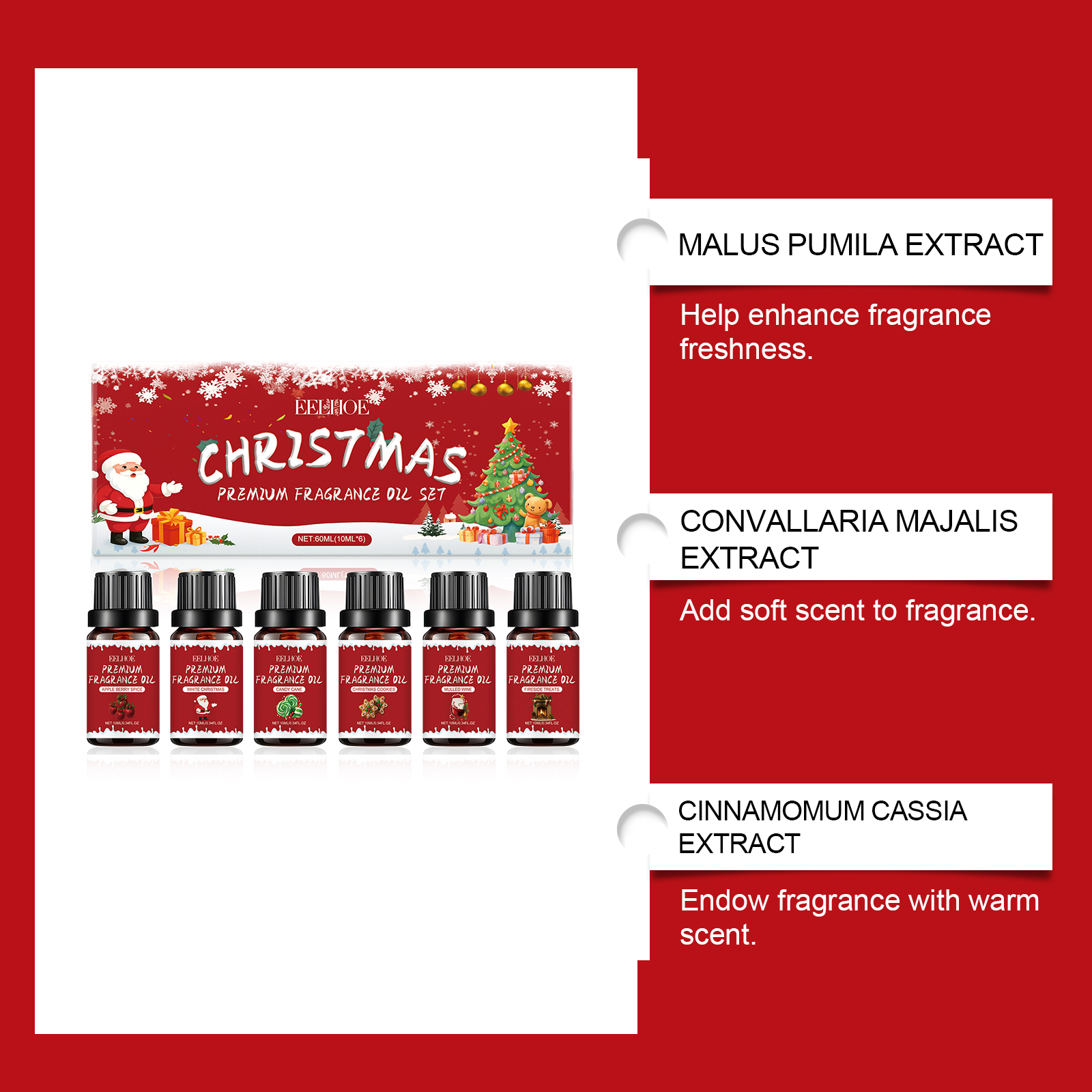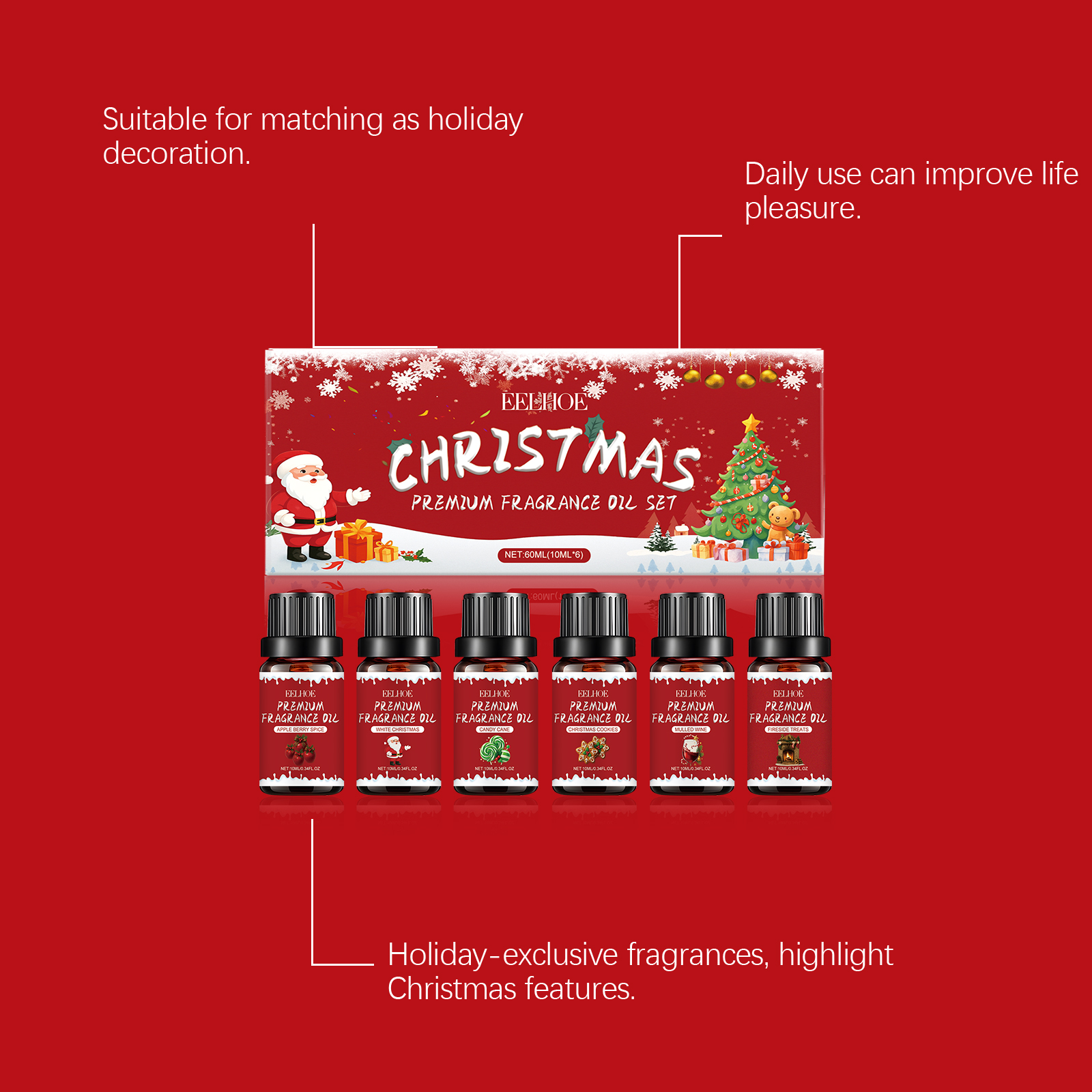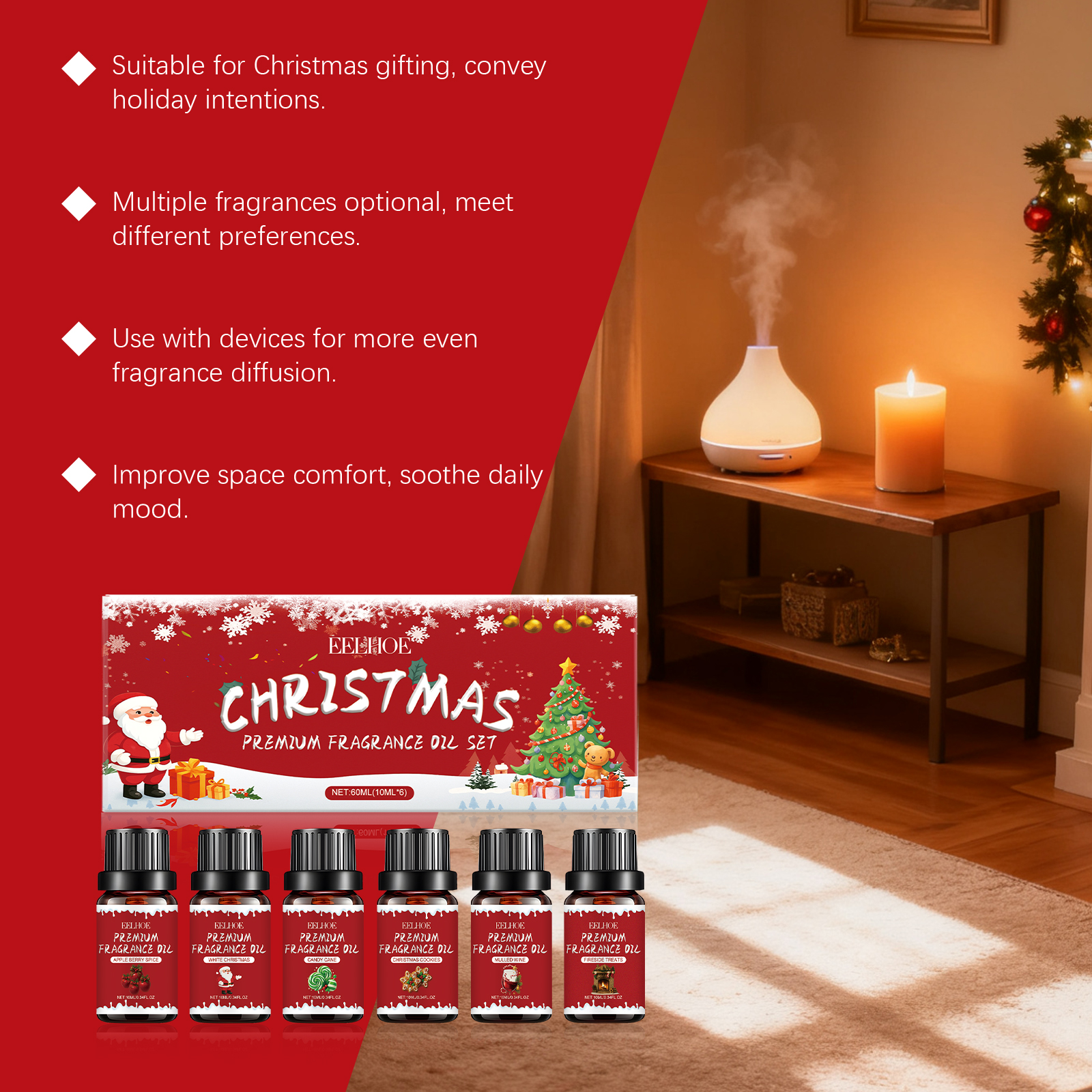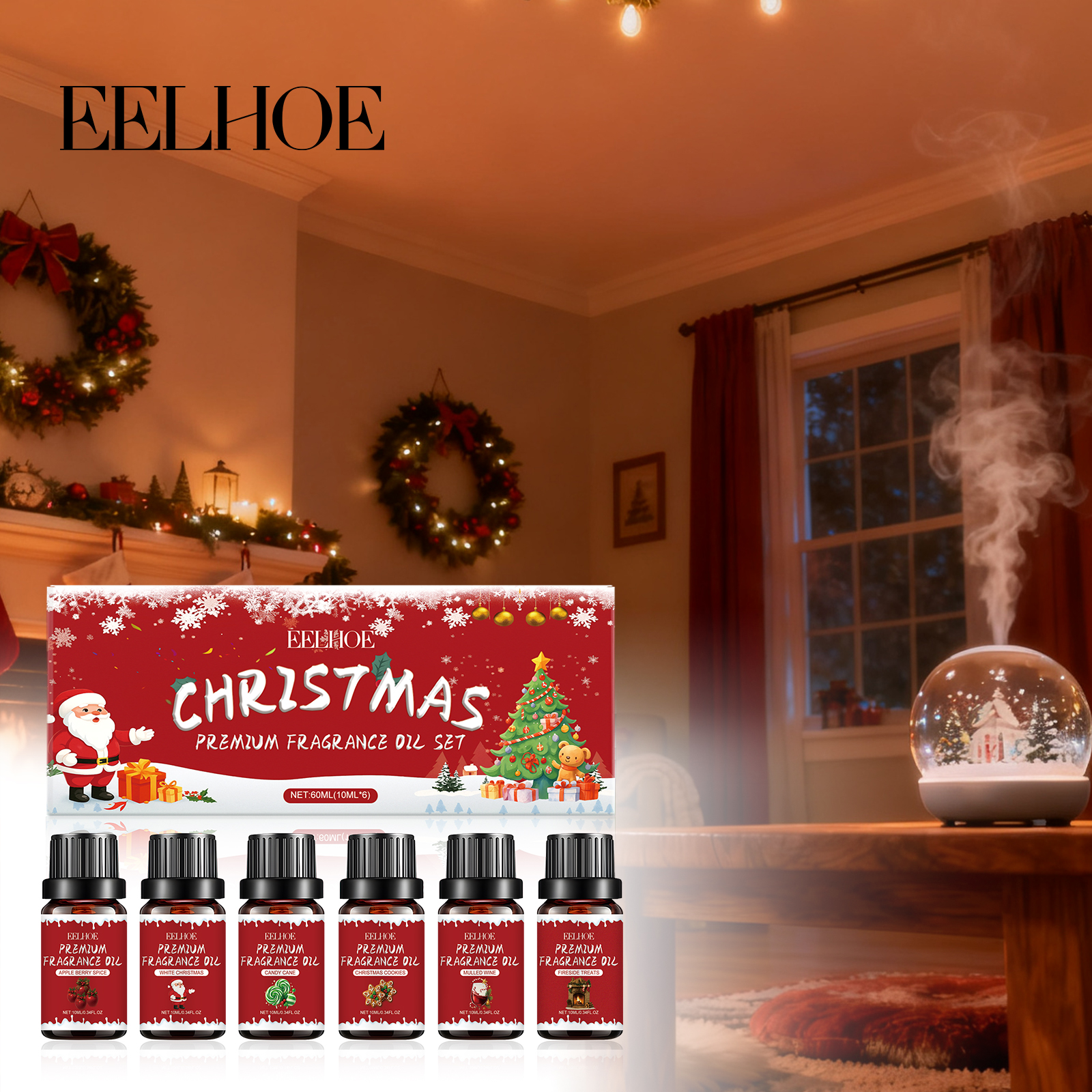 EELHOE Christmas Essential Oil Set Is A Natural, Fresh And Lingering Fragrance That Creates A Comfortable Atmosphere For Home And Office Use During The Holiday Season