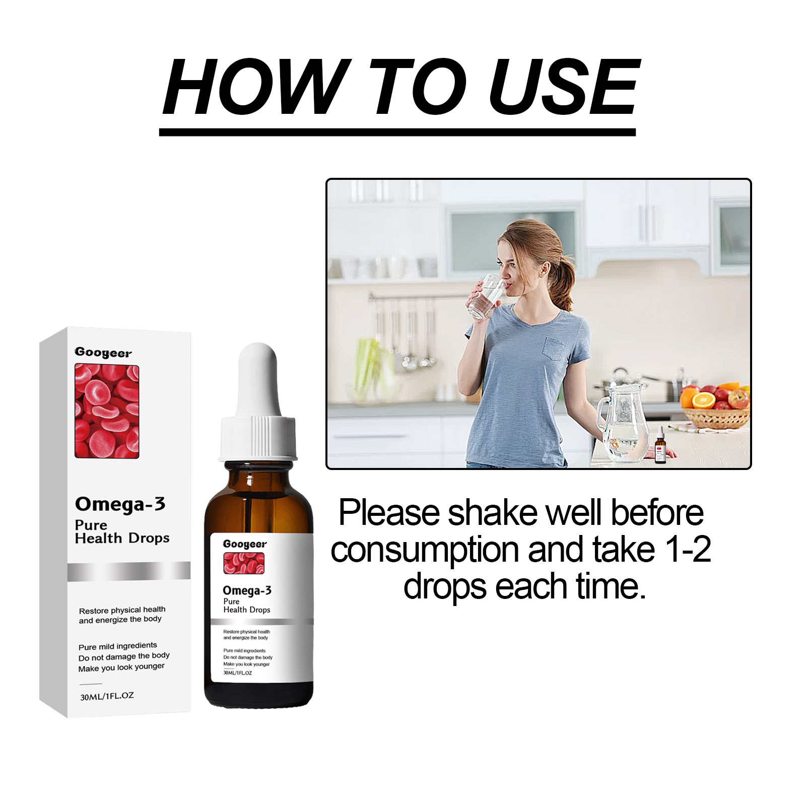 Googeer Omega-3 Pure Health Drops, Relieve Physical Discomfort Balance Blood Lipid Sugar Shu Health Care Drops