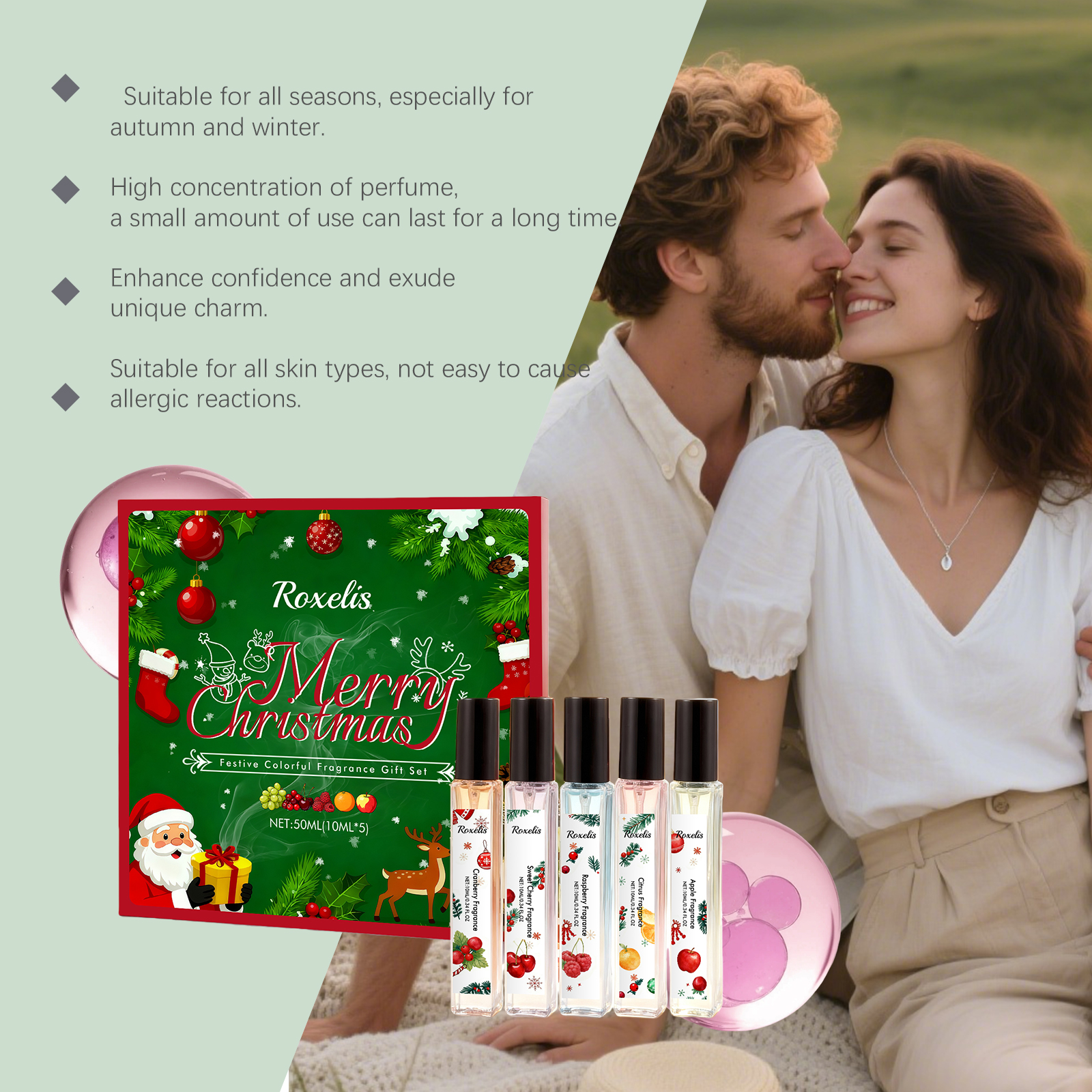 Roxelis Christmas Colorful Fragrance Gift Box Gentle, Natural, Fresh, Elegant And Light Fragrance. Daily Couple Date Fragrance Gift Box