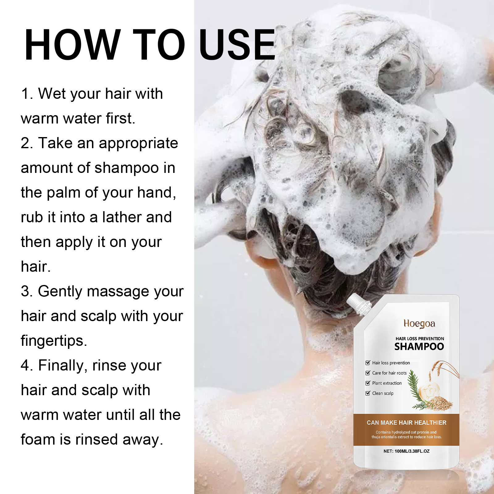 Hoegoa Anti-Hair Loss Shampoo Cleans Scalp, Repairs Damaged Hair, Moisturizes And Thickens Hair, And Prevents Hair Loss