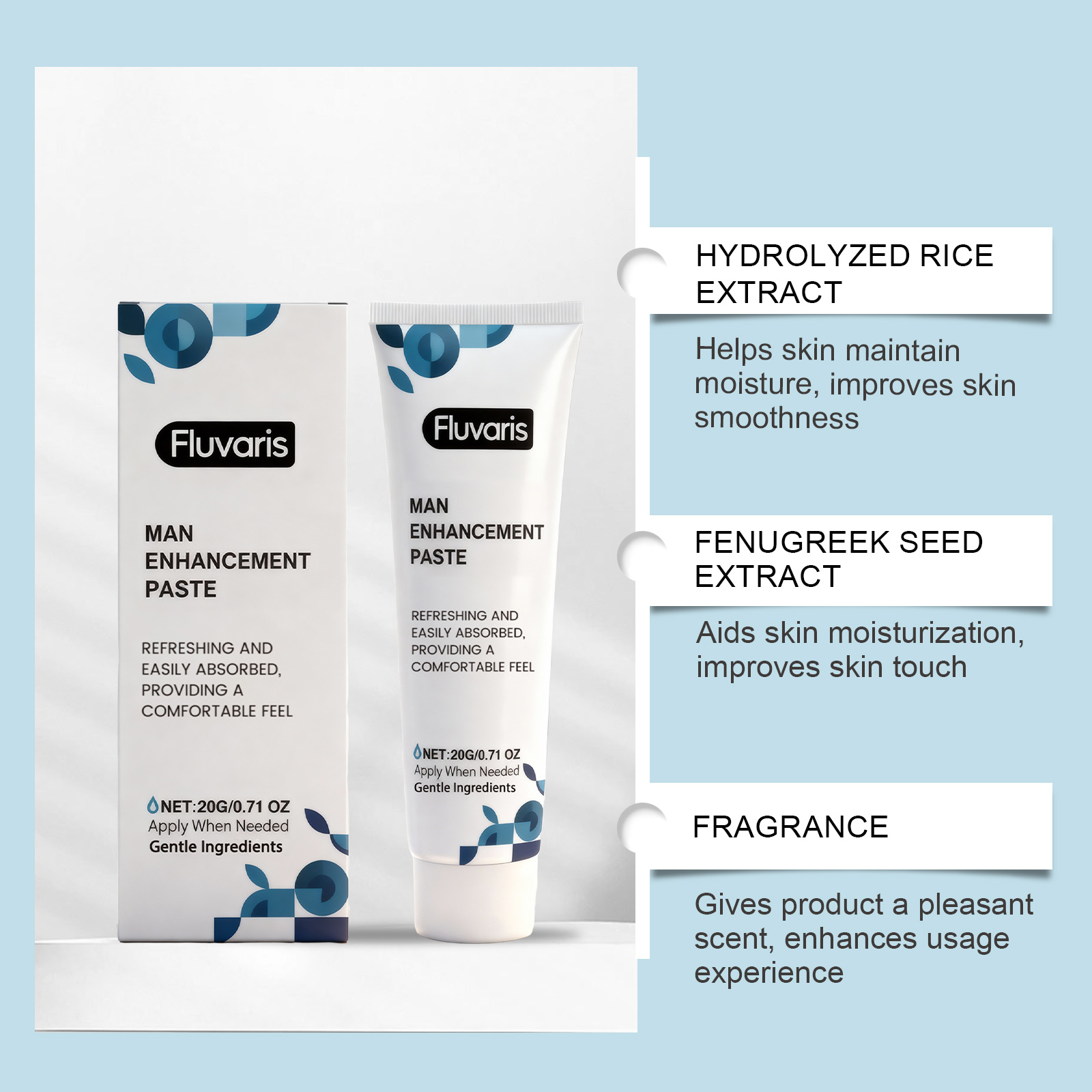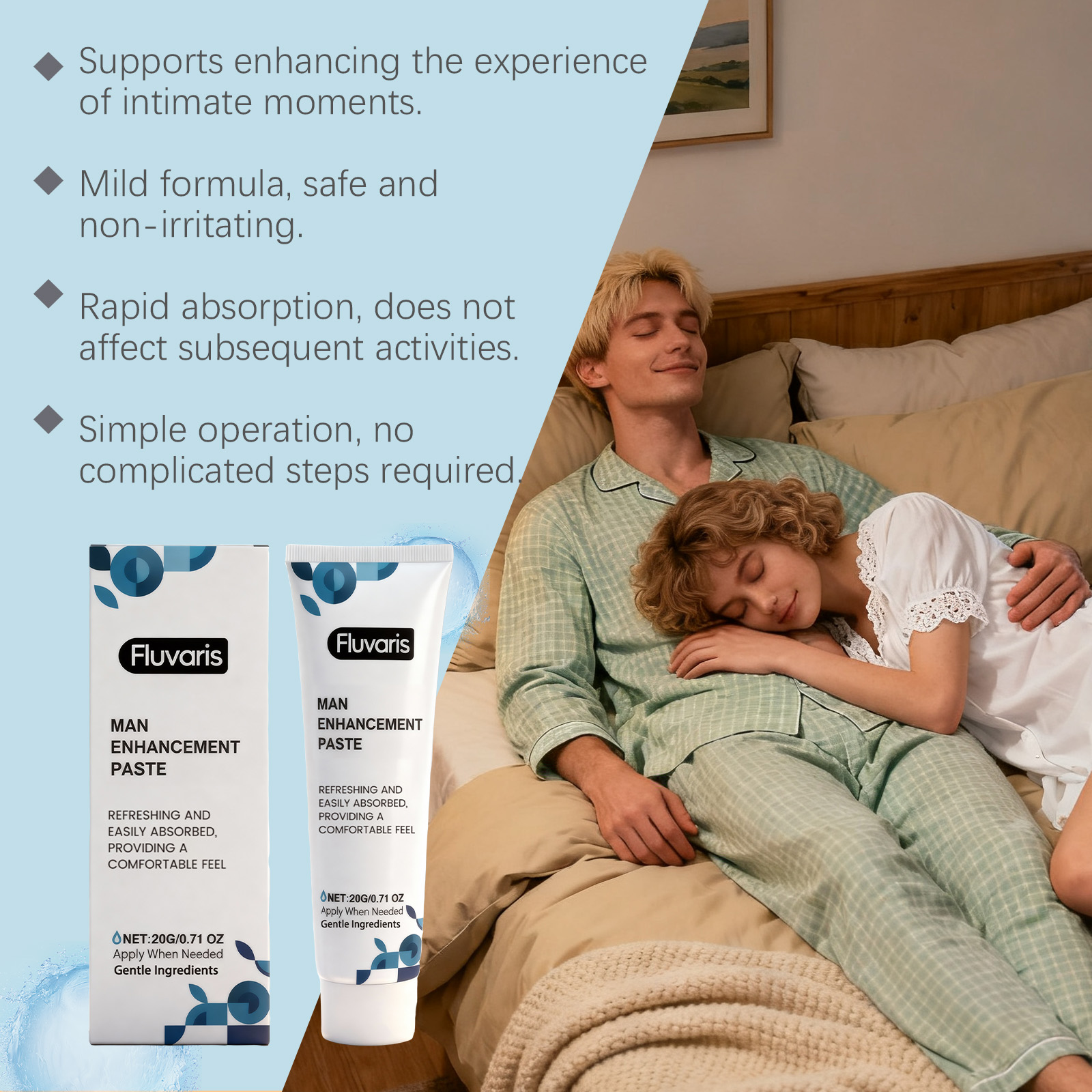 我们的男士护理膏,由胡芦巴籽提取物、水解大米提取物精心调配而成。专为满足亲密需求设计。使用方法极为便捷:1.清洁并擦干私密部位。2.挤出适量本产品,均匀涂抹于私密部位。3.轻柔按摩,以促进吸收。并且可以及时获得结果。